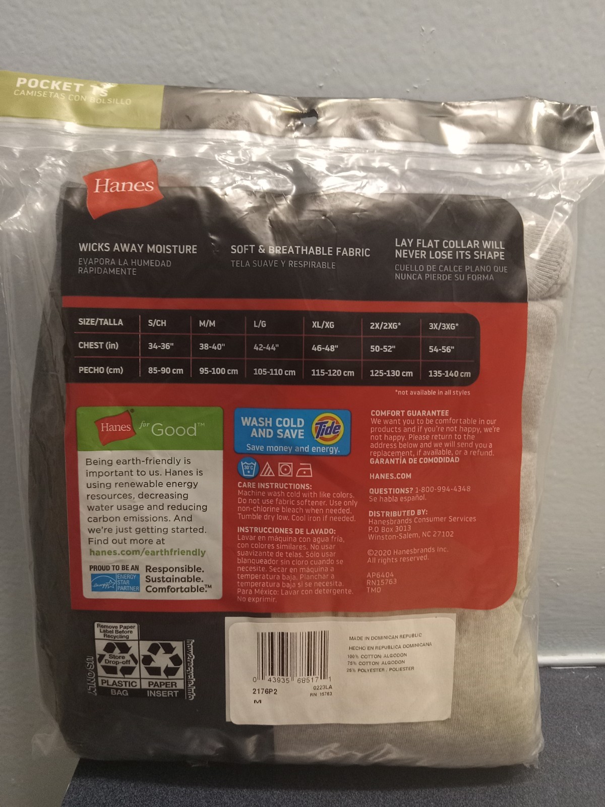 как выглядит NEW 2pk Hanes Tagless Pocket Ts Sz M 38-40" Soft Breathable, Cool Comfort. фото