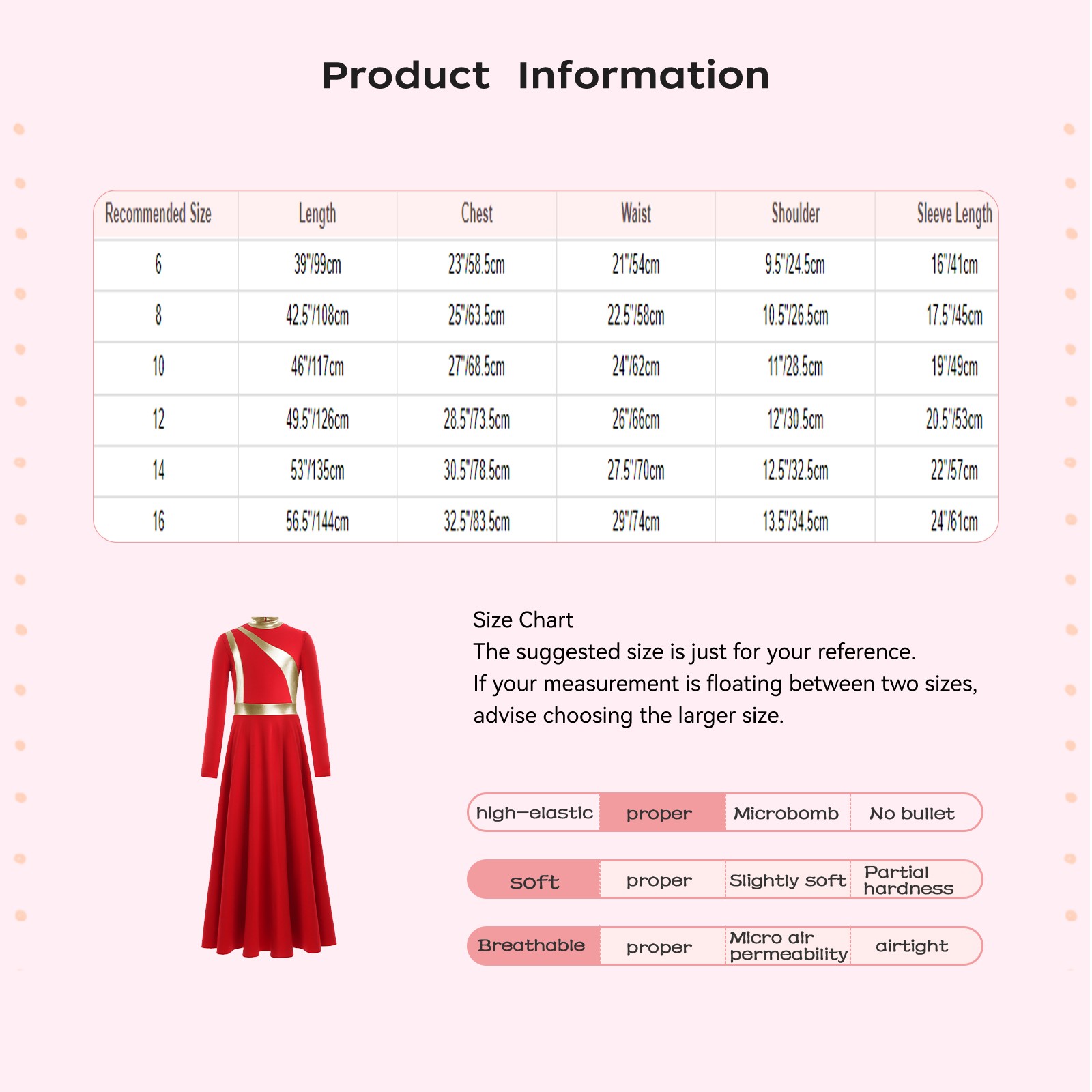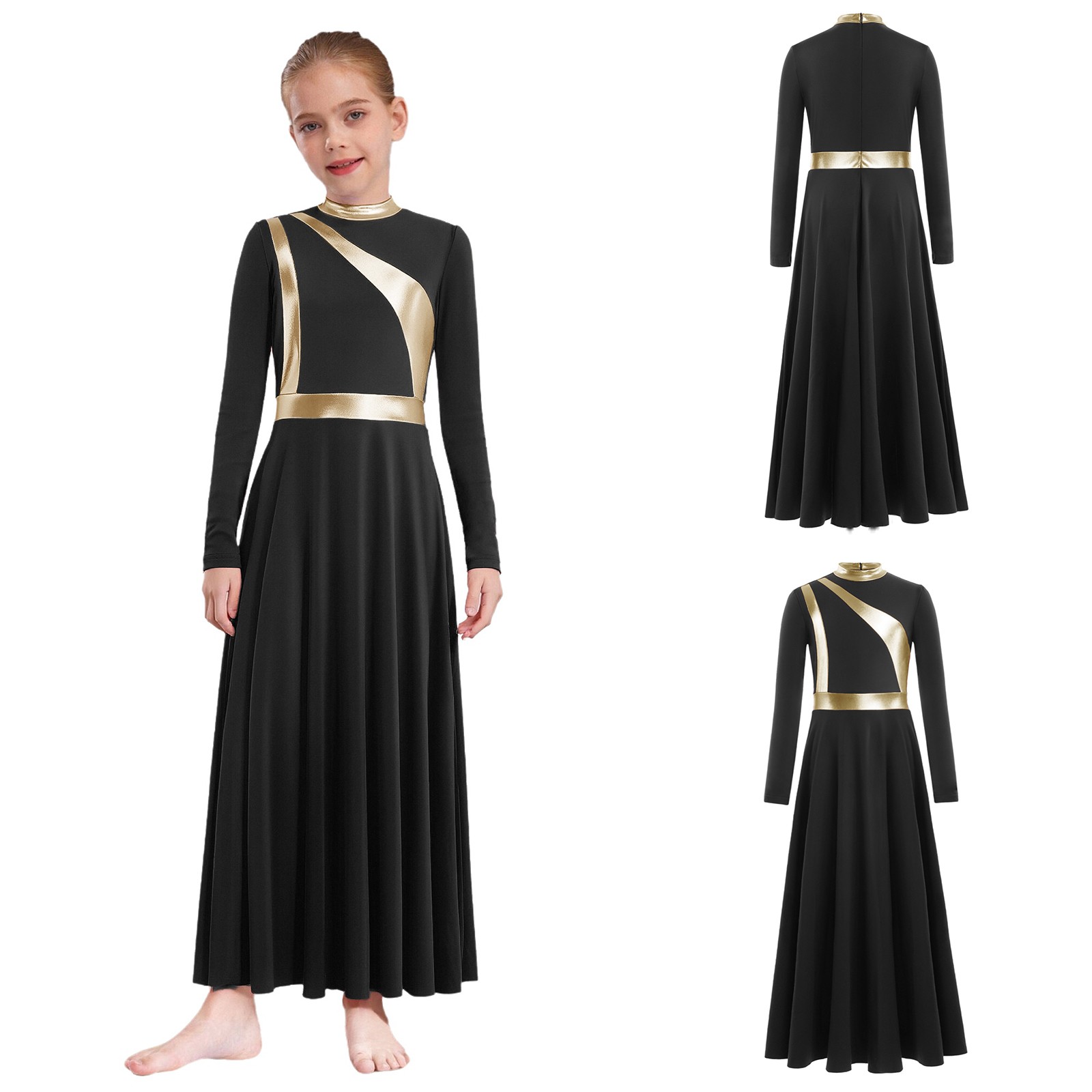 Girls Praise Dance Dress Full Length Liturgical Worship Church Robe Swing Skirt