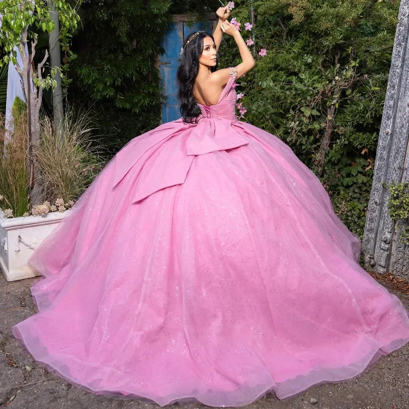 как выглядит Shiny Tulle Sweetheart Quinceanera Dresses Bead Lace Bow Ball Gown Sixteen Dress фото