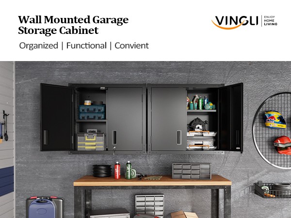 Garage Wall Storage Cabinet with Lock Adjustable Shelves - Rust Resistant New