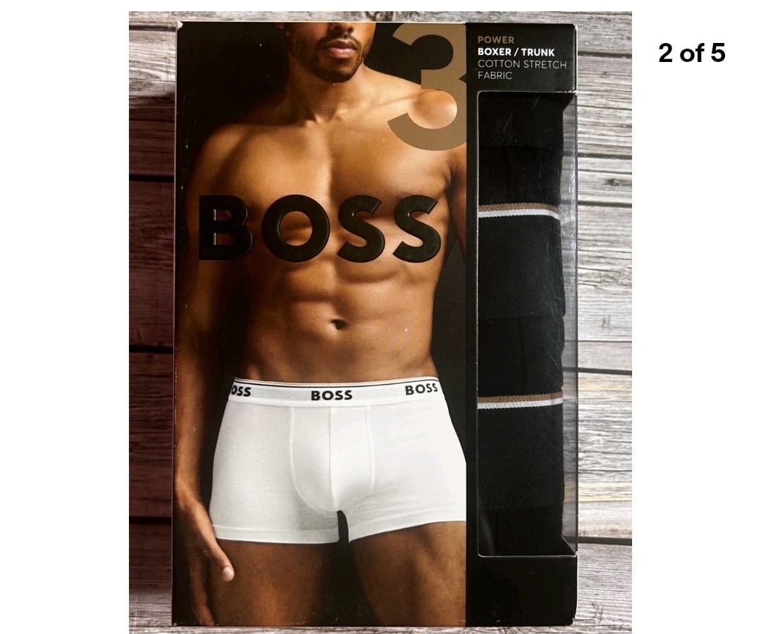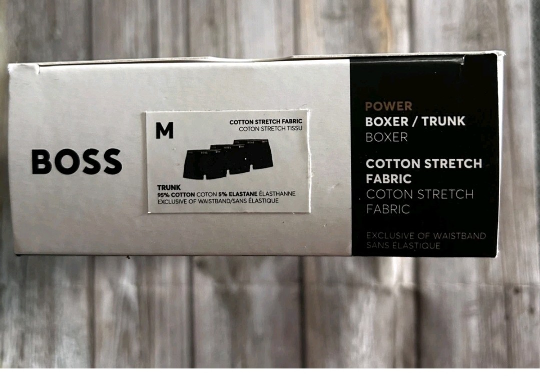 Hugo Boss Mens Power Cotton Stretch Boxer Trunk Underwear Black Size Medi 3 Pack