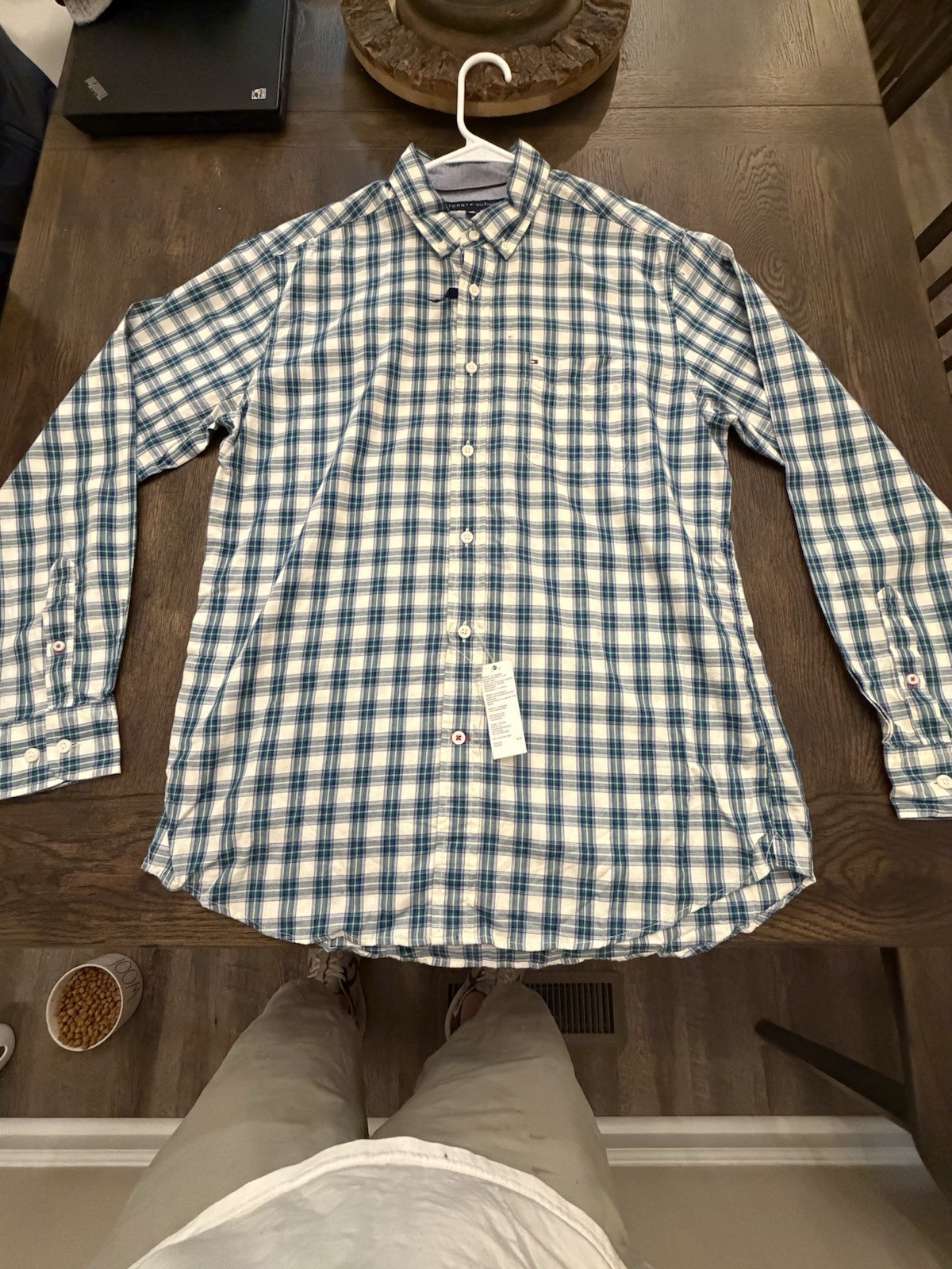 Tommy Hilfiger Men's Plaid Blue White Long Sleeve Button-Down Shirt Size L