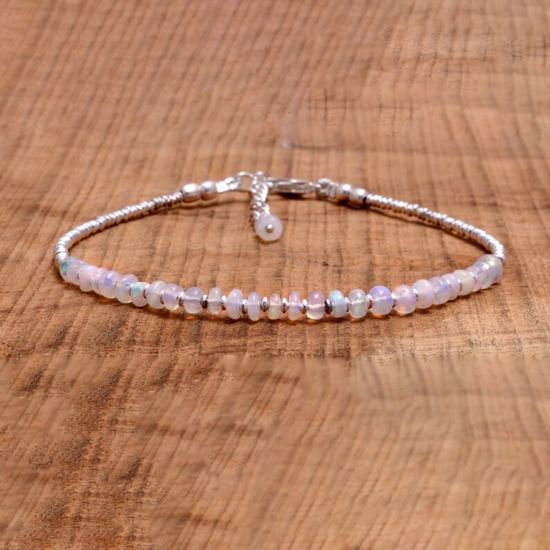 как выглядит Fire Opal 2-3MM Faceted Round Gemstone Silver Plated Beaded Women Bracelets 6-8" фото