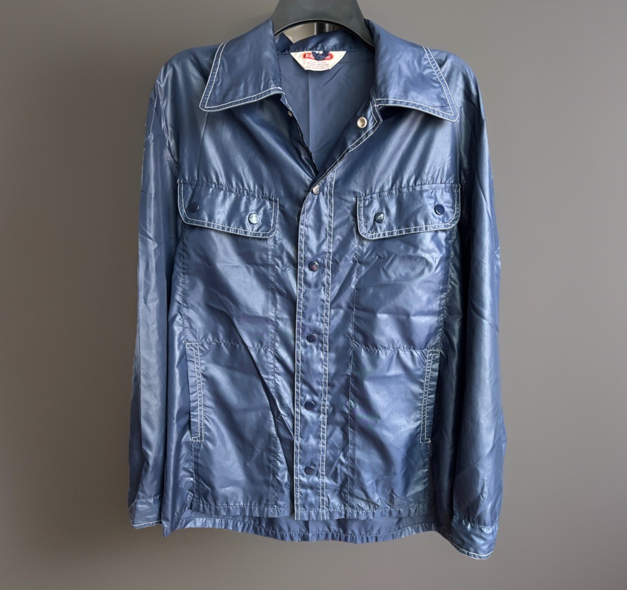 VTG 70s Kentfield Killer NYLON Disco Shacket.white Trim.large