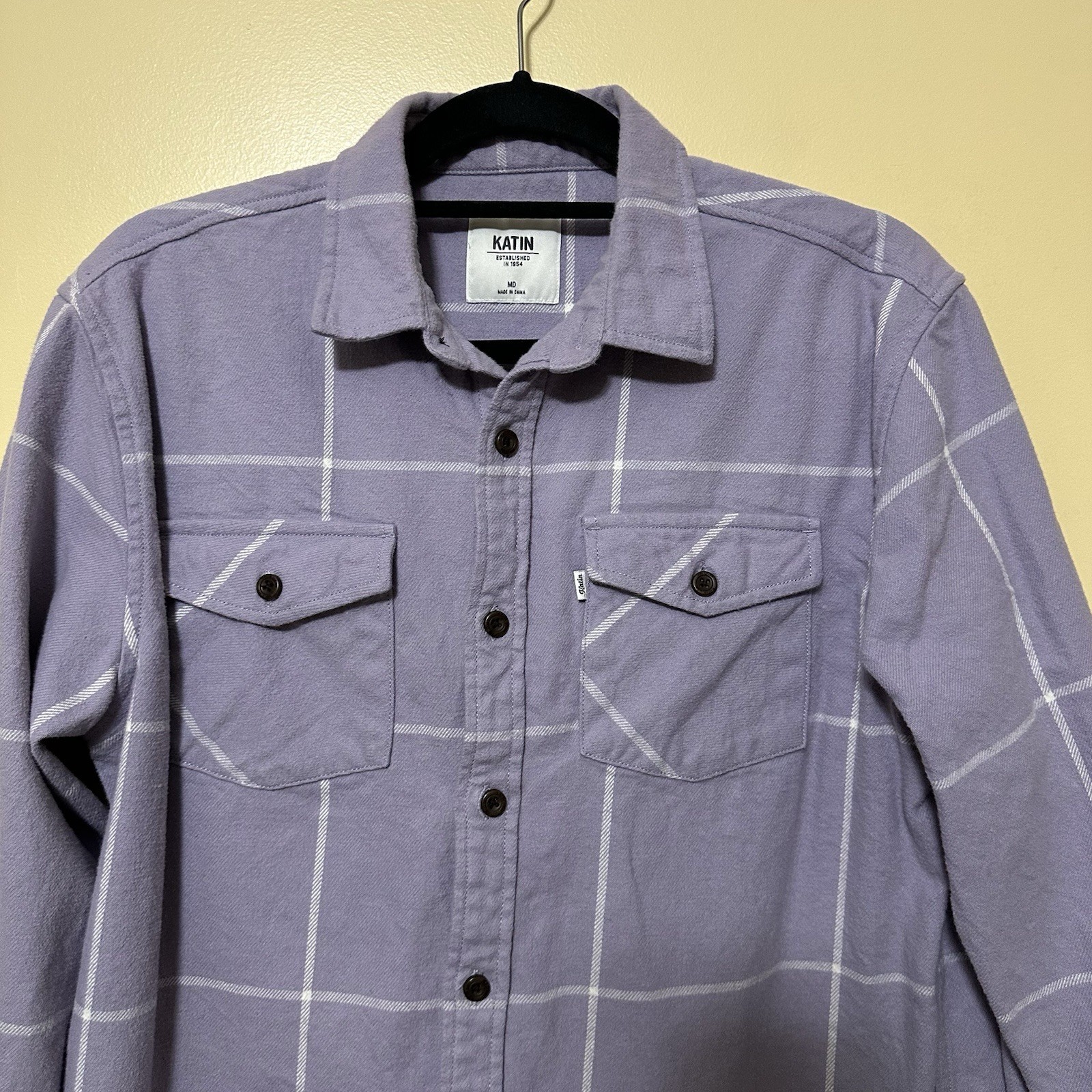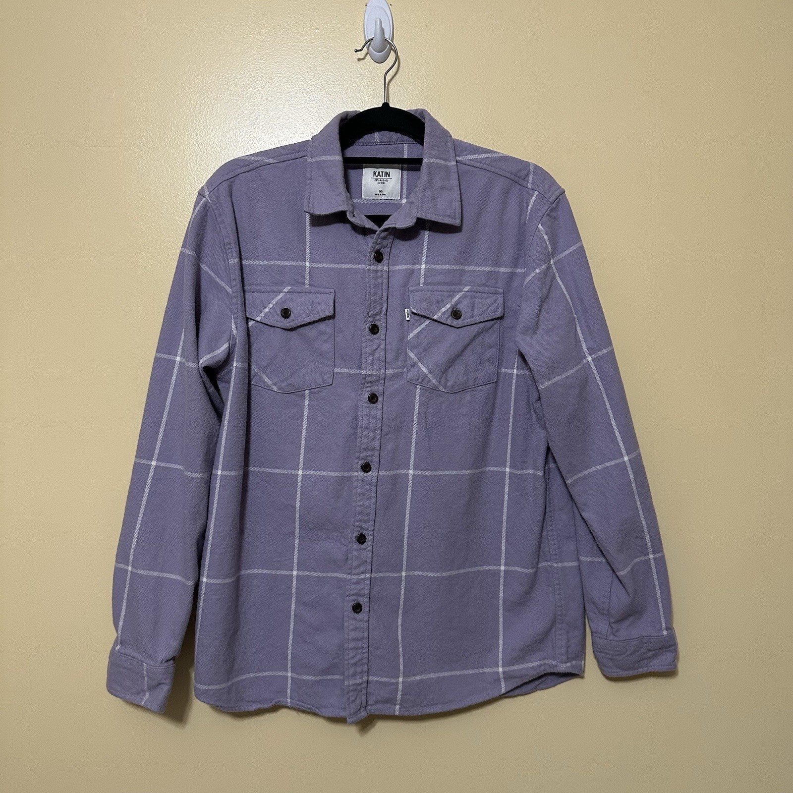 как выглядит Katin Monty L/S Flannel Shirt Men M Lavender Plaid Pattern фото