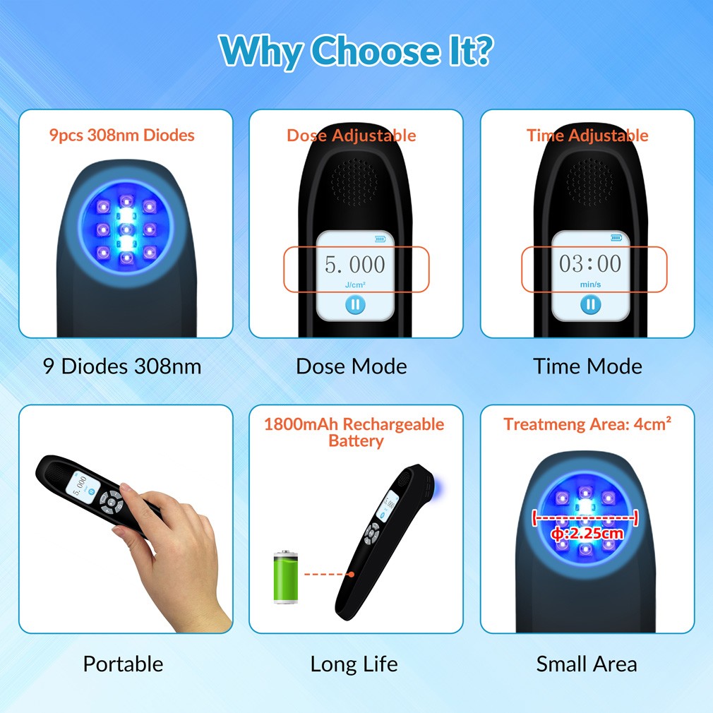 308nm Excimer Blue Uvb Light therapy device for Skin Deseases Treatment 65mW/cm2