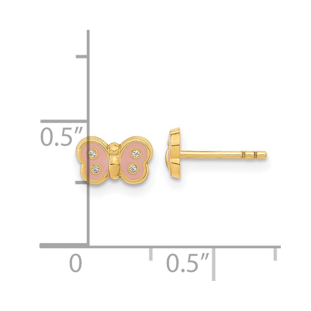 14k Yellow Gold Polished Pink Enameled Cubic Zirconia Butterfly Stud Earrings