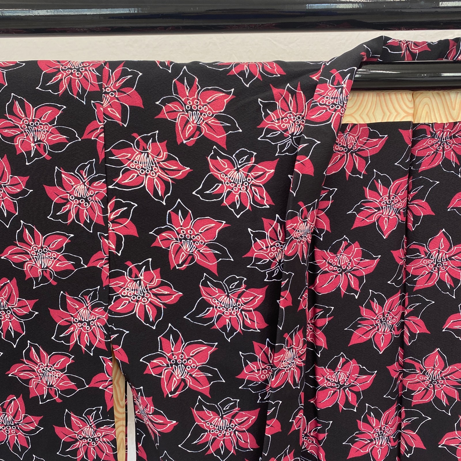 как выглядит Japanese Vintage Kimono Haori Jacket Polyester Black Traditional Authentic 30 in фото