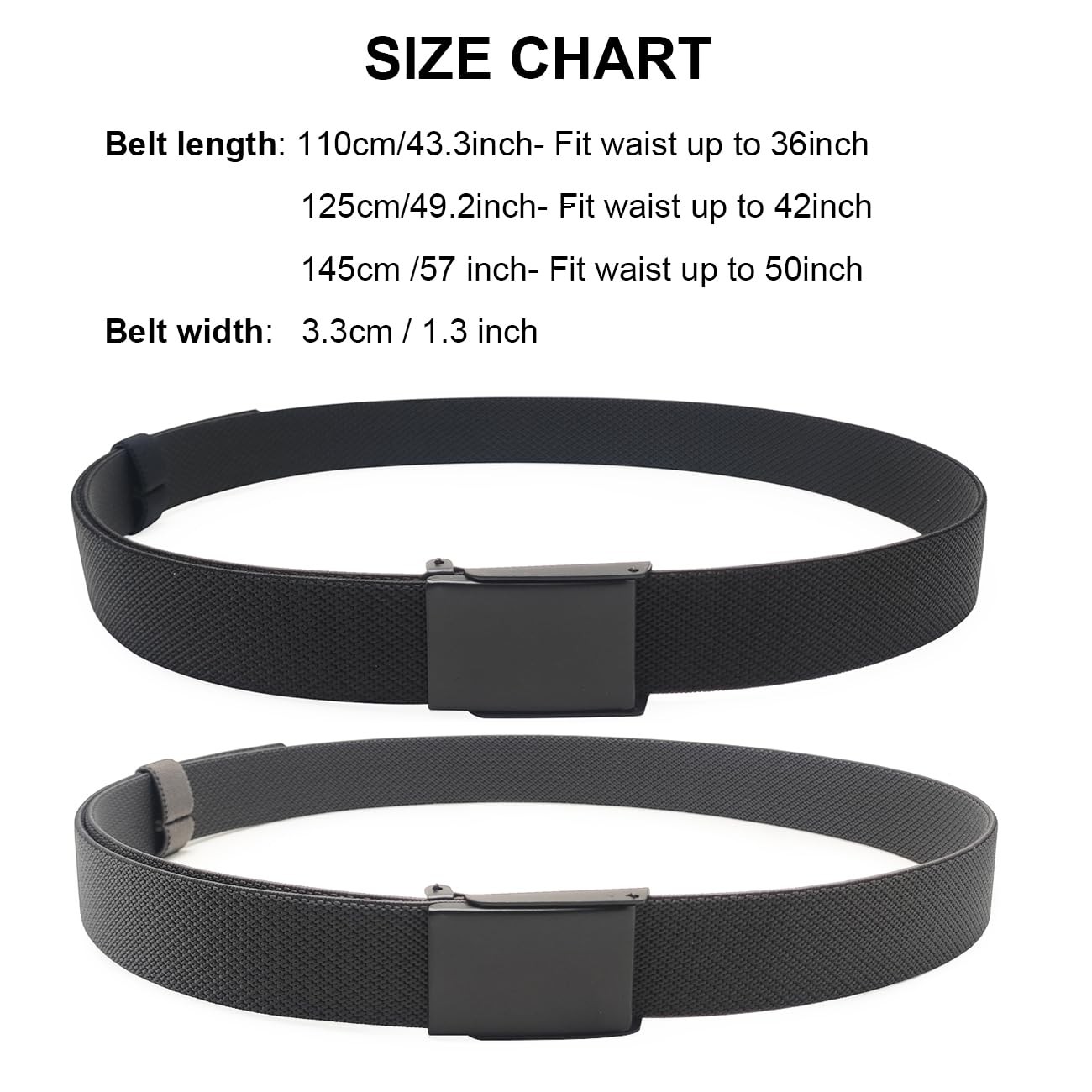2 PCS Mens 1.3 Inch Stretch Elastic Nylon Web Golf Belt Flip Top Metal Buckle