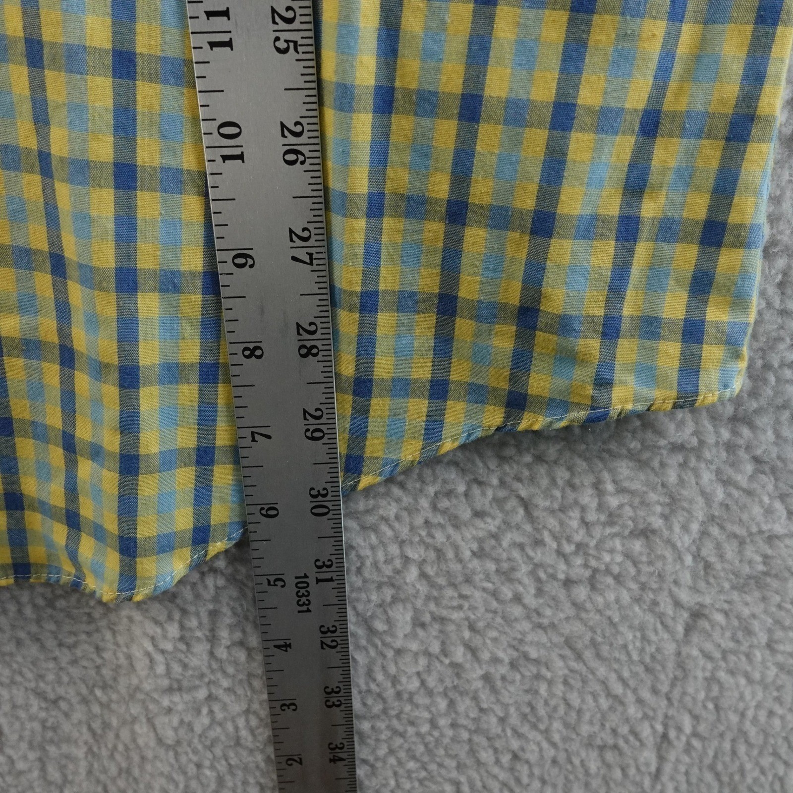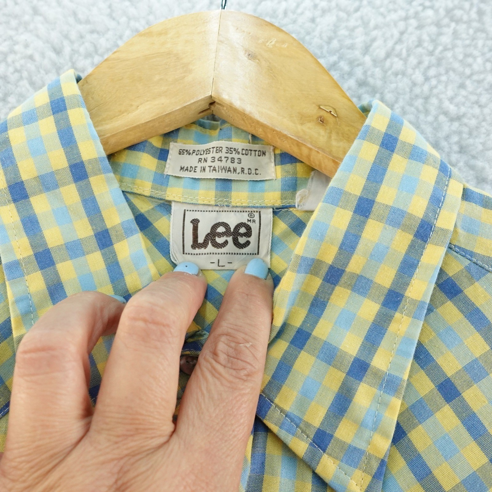 как выглядит Vintage Lee Western Pearl Snap Shirt Mens L Plaid Yellow Blue Short Sleeve Y2K фото