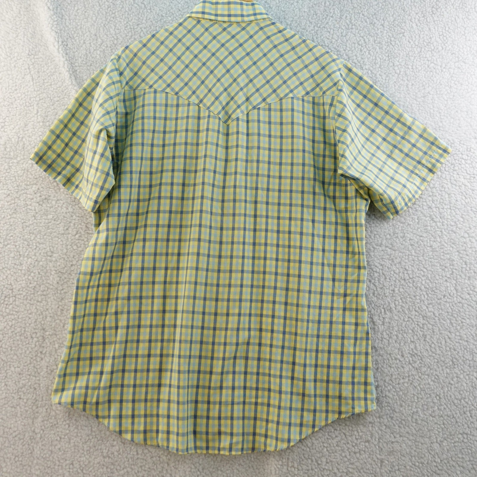 Vintage Lee Western Pearl Snap Shirt Mens L Plaid Yellow Blue Short Sleeve Y2K