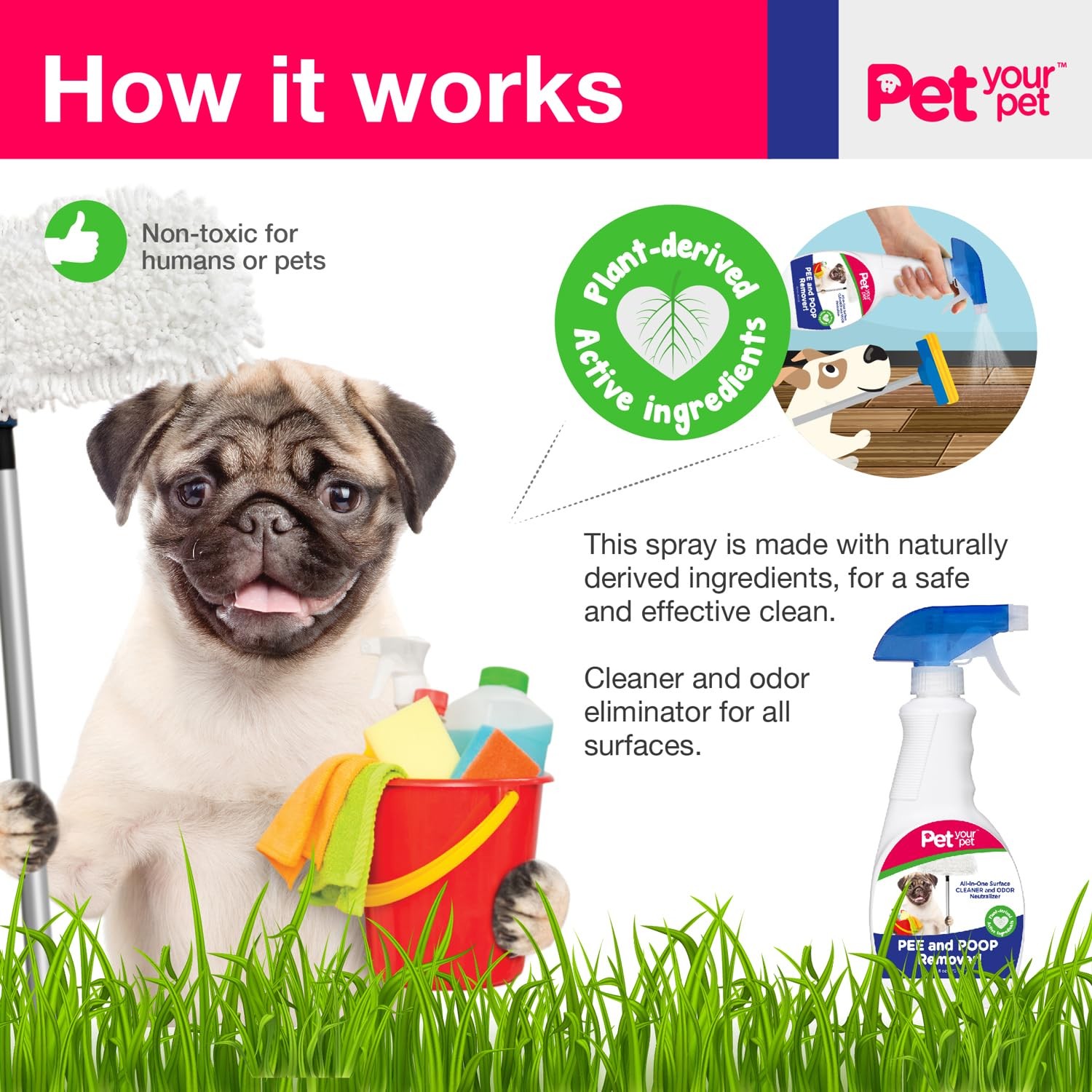 Dog Pee and Poop Remover 32 fl Oz. All-in-One Pet Stain and Odor Remover wi...
