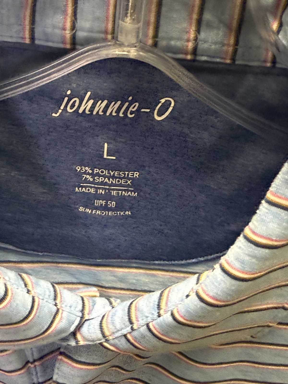 NWT MEN'S JOHNNIE-O POLO, SIZE: L, COLOR: LIGHT BLUE/PINK STRIPED M10.26