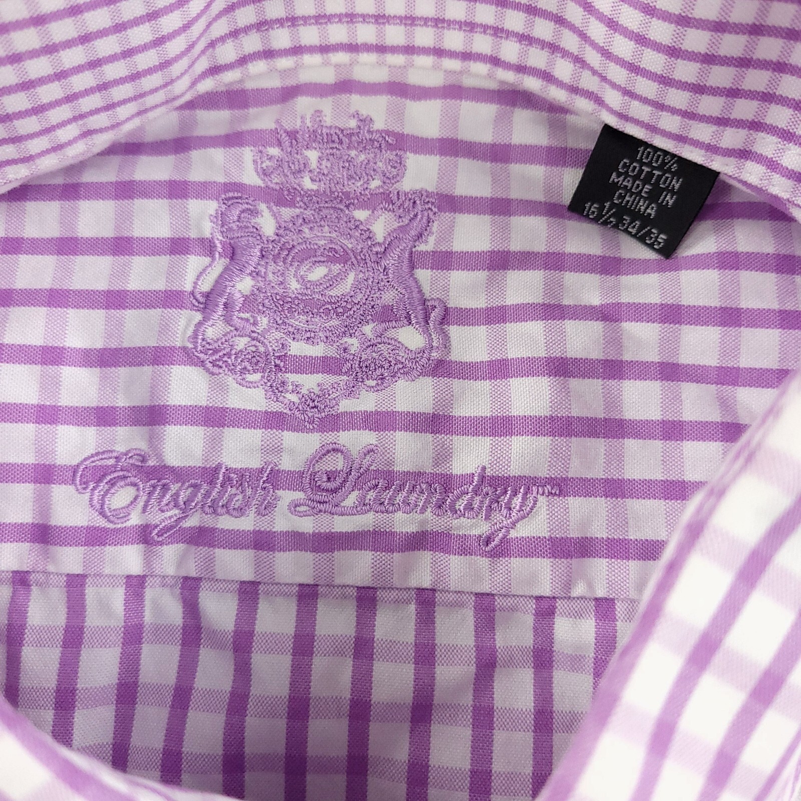 English Laundry Dress Shirt Mens 16 1/2 Purple Business Casual Office Flip Cuff