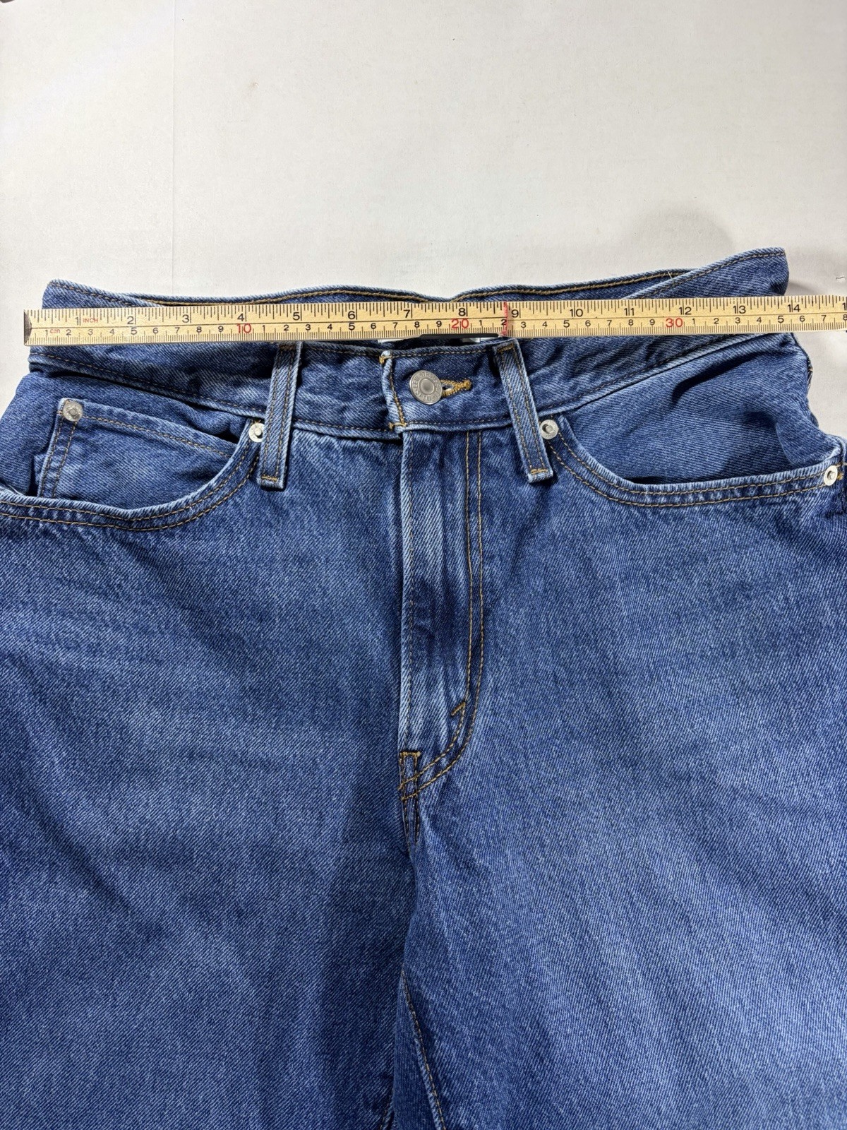 как выглядит LEVI S 94 Baggy Wide Leg Medium Wash Denim Jeans 100 Cotton Size 27 фото