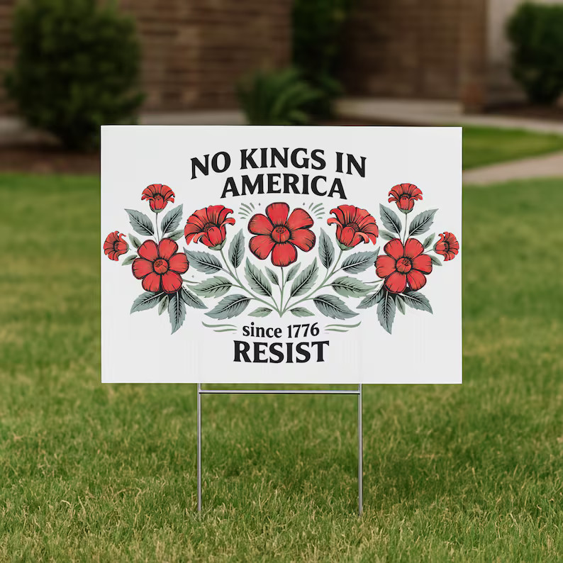 как выглядит No Kings In America Since Floral Yard Sign Political Protest Garden Decor фото