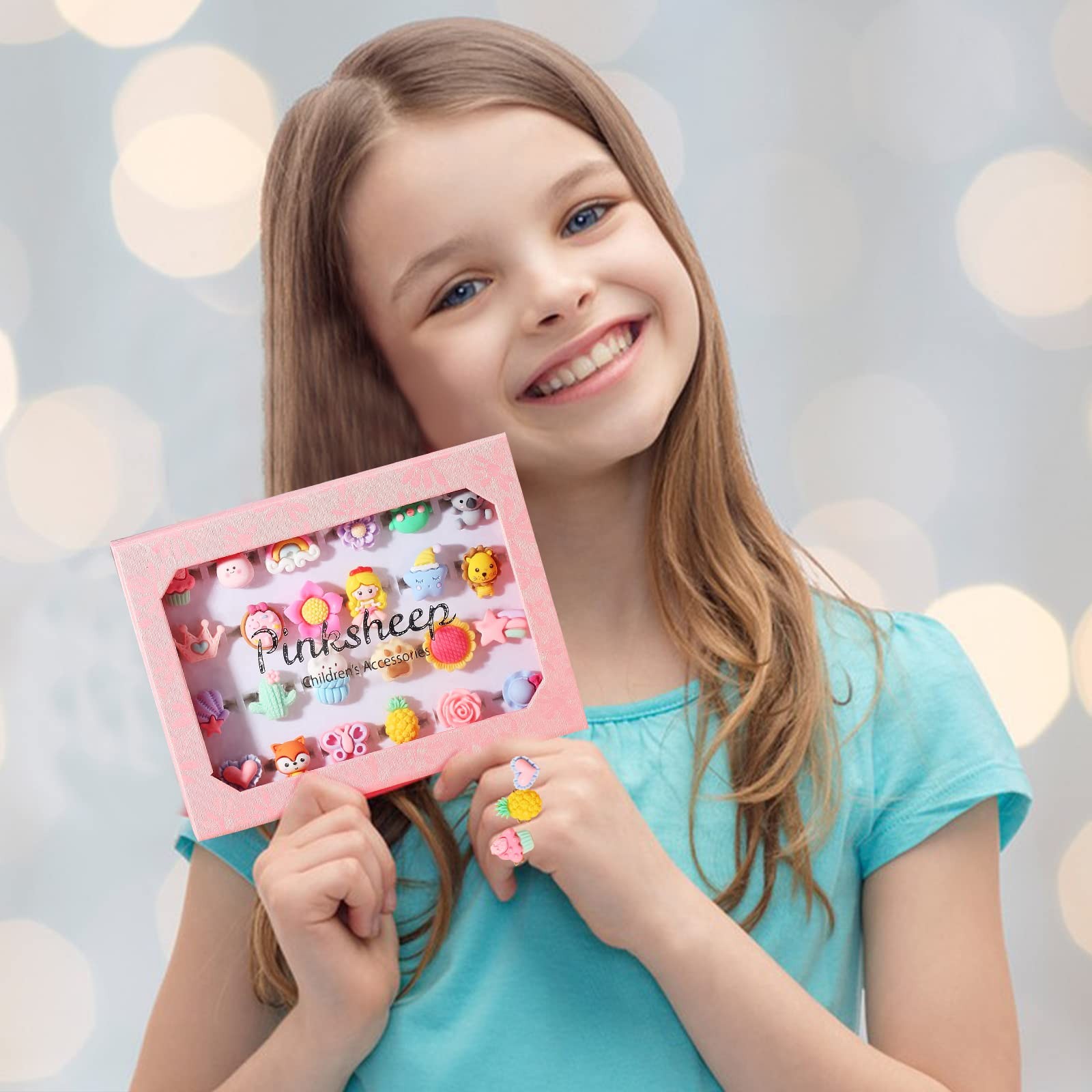 как выглядит Little Girl Jewel Rings Pink,Adjustable Princess Ring Set in Gift Box,Kids Dr... фото
