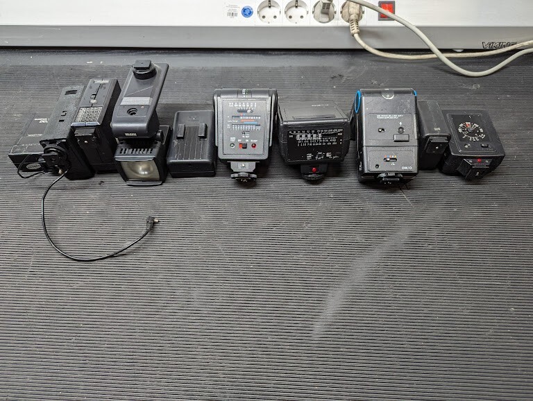 Lot Of 10 Various Model Speedlite Flash Vivitar auto 215 tz 250 - Untested