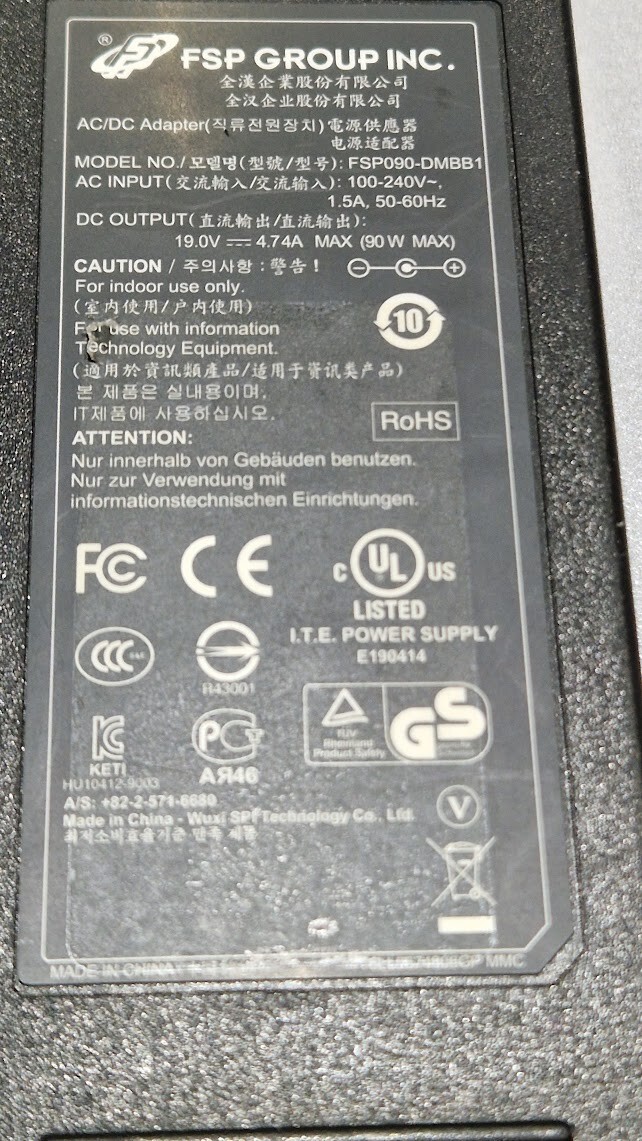 FSP FSP090-DMBB1 AC/DC Adapter 19.0V 4.74A Used Working Without Power Cord
