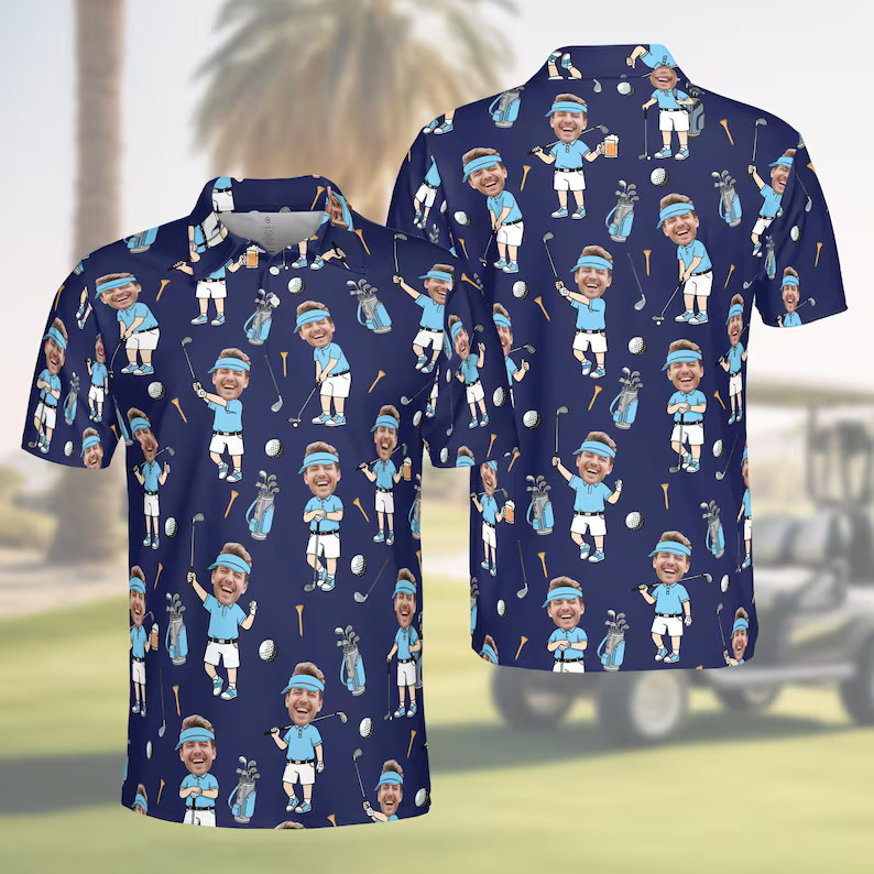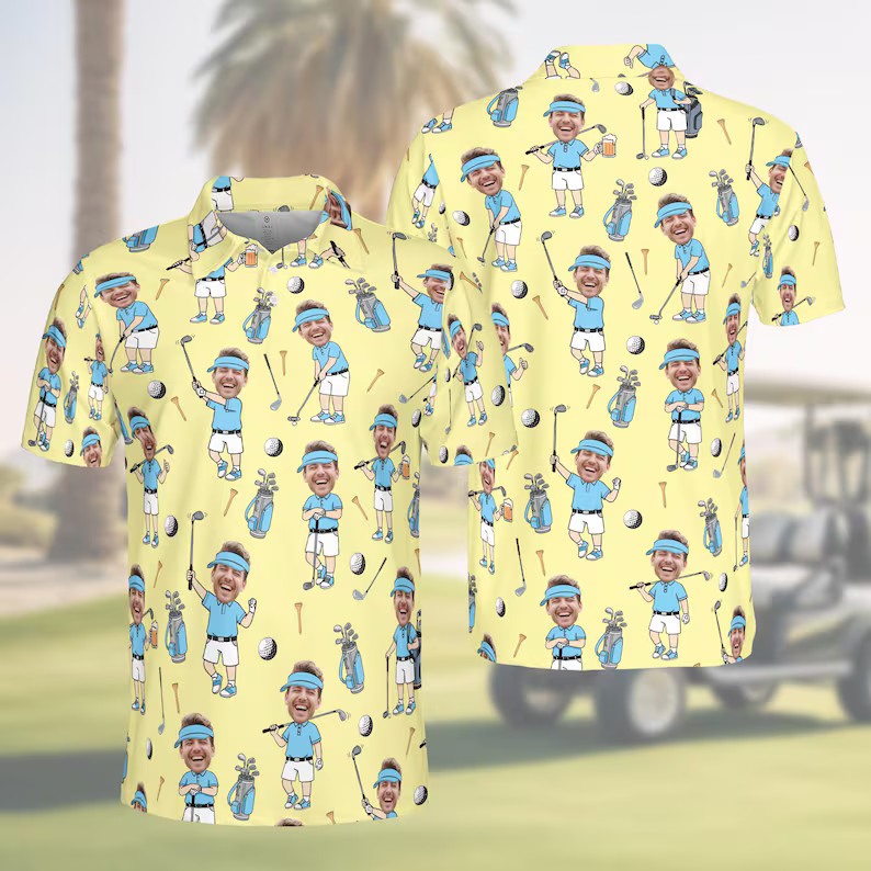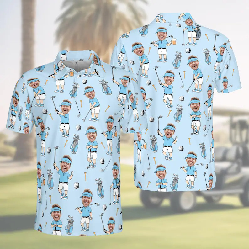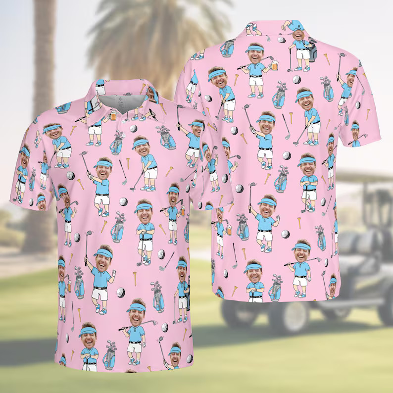 Custom Face Golf Polo Shirt For Men Personalized Photo Funny