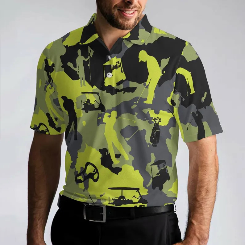 Green Grey Camouflage Polo Shirt Mens Golf Casual Print