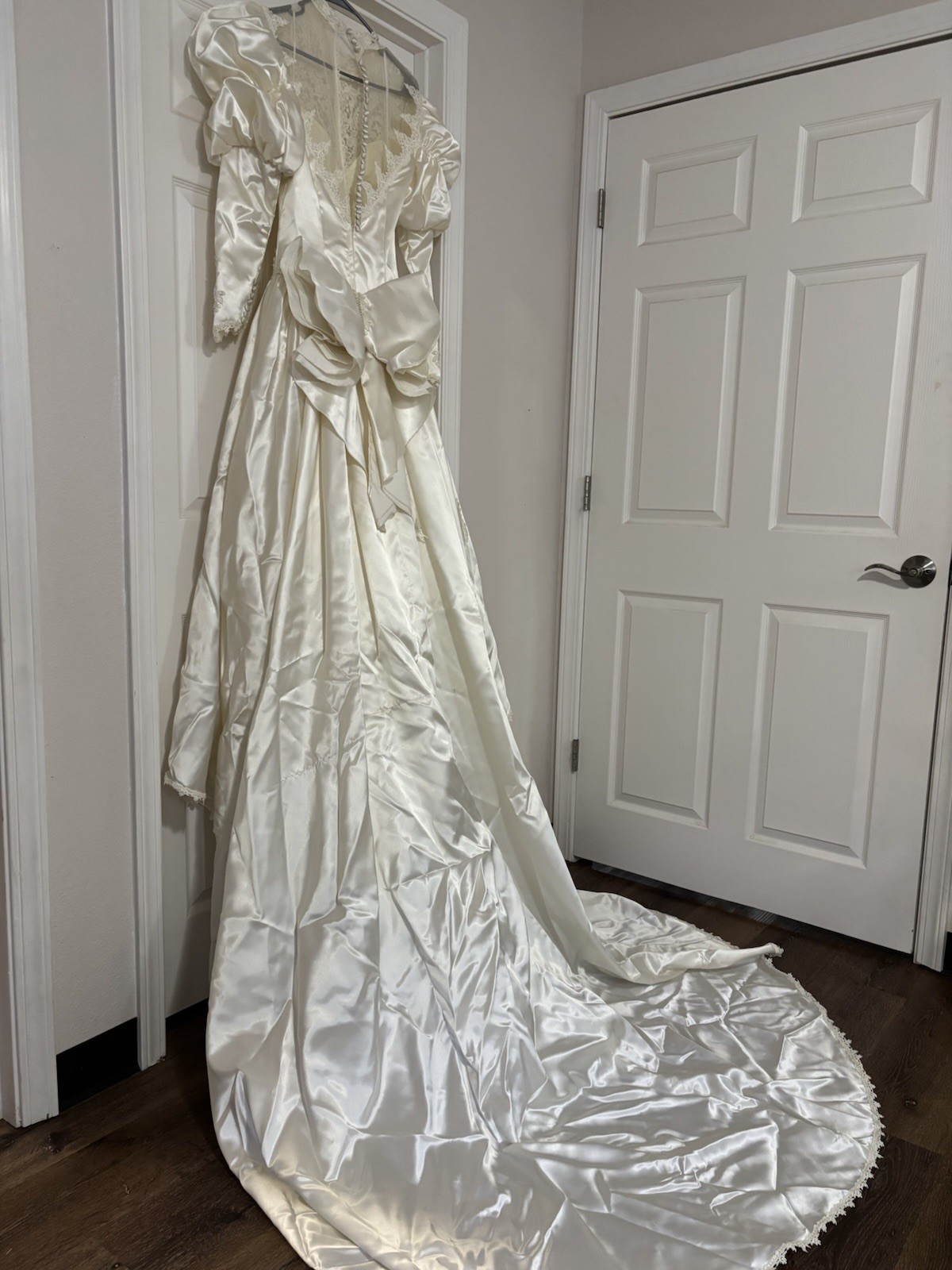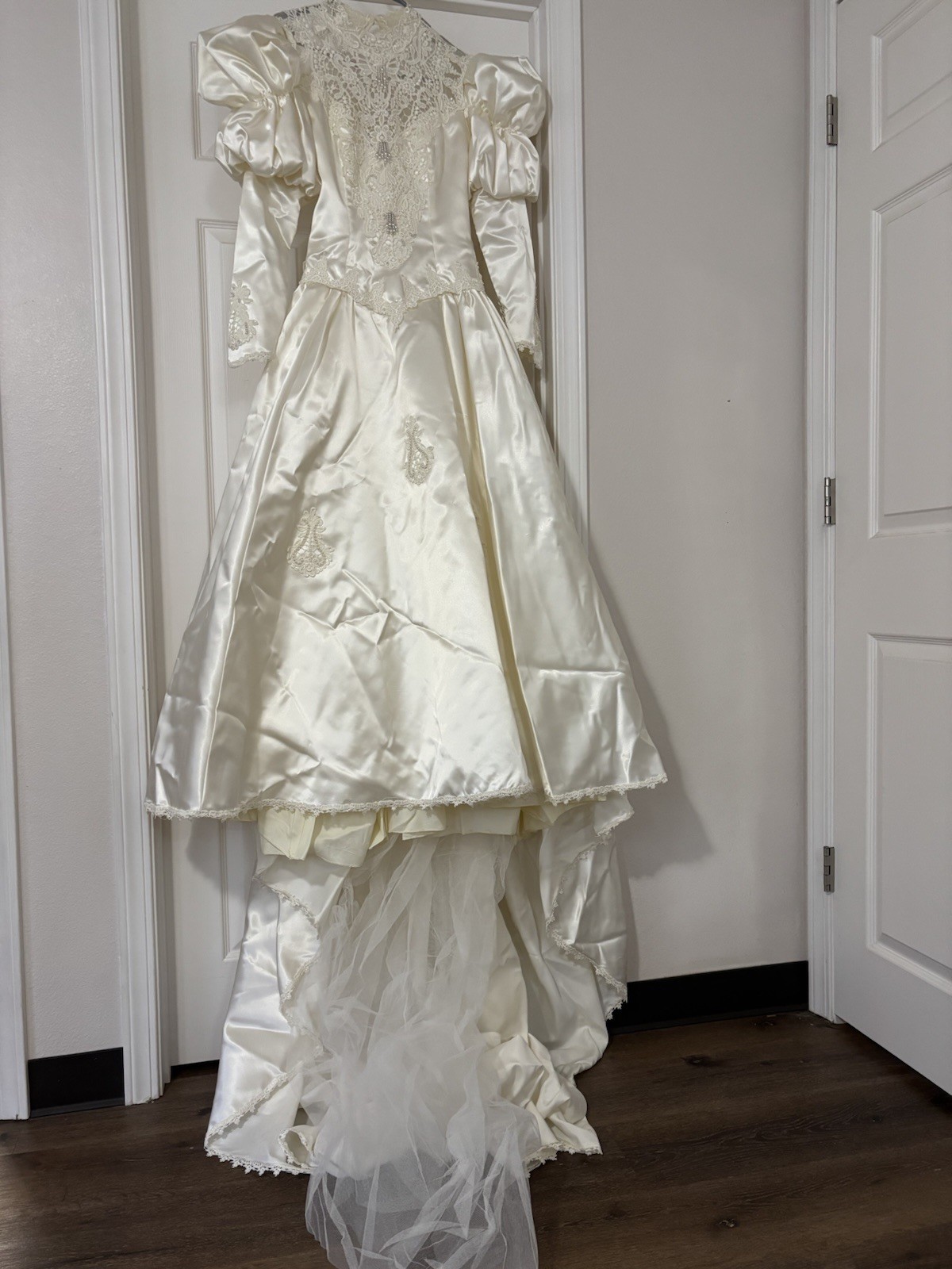 Vintage Ivory Lace Wedding Dress With Long Train.