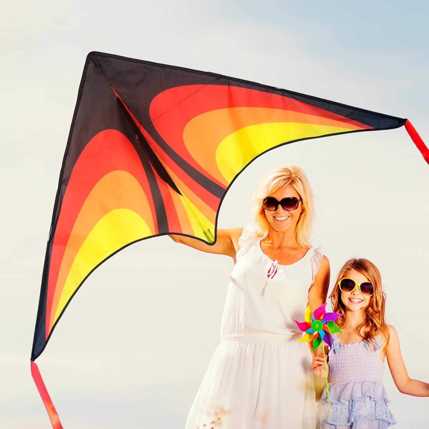 Red Large Delta Kite Easy to Fly Nylon Outdoor Flying Toy with Handle Line