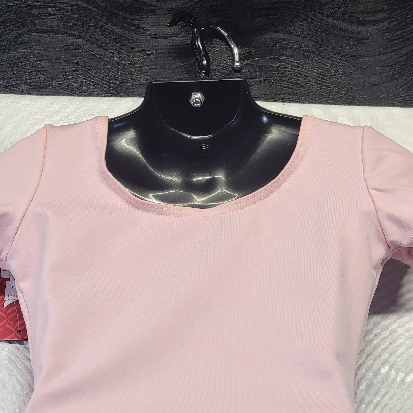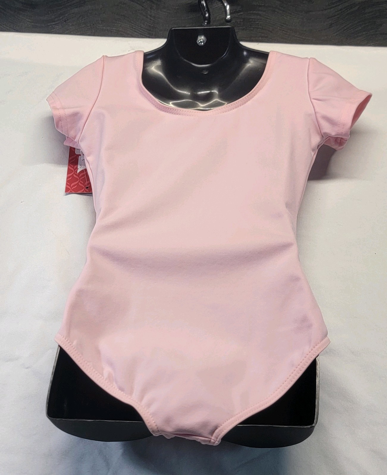 Capezio Team Basics Short Sleeve Child Leotard Pink Scoop Front Back SZ MC