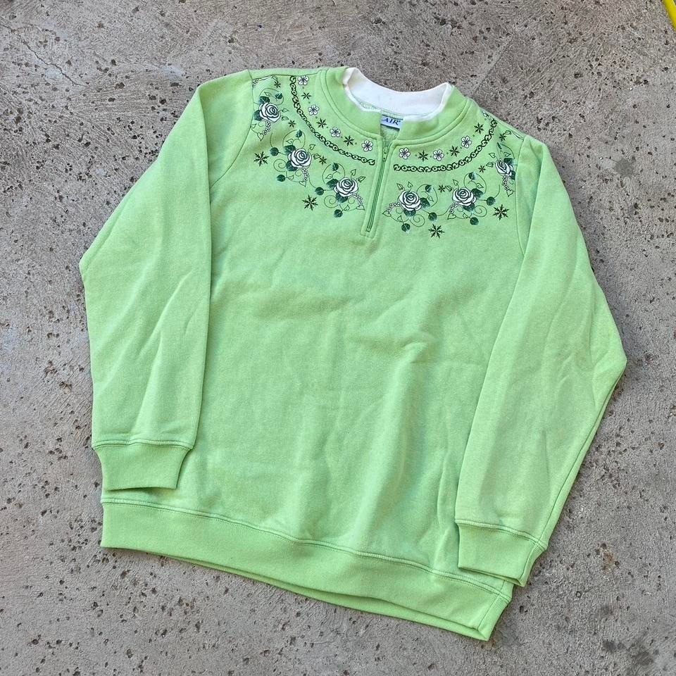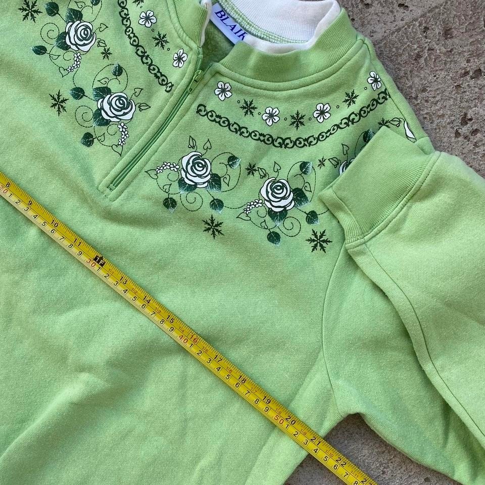 как выглядит Vintage 90s Blair Green Floral Quarter Zip Sweatshirt Size M фото