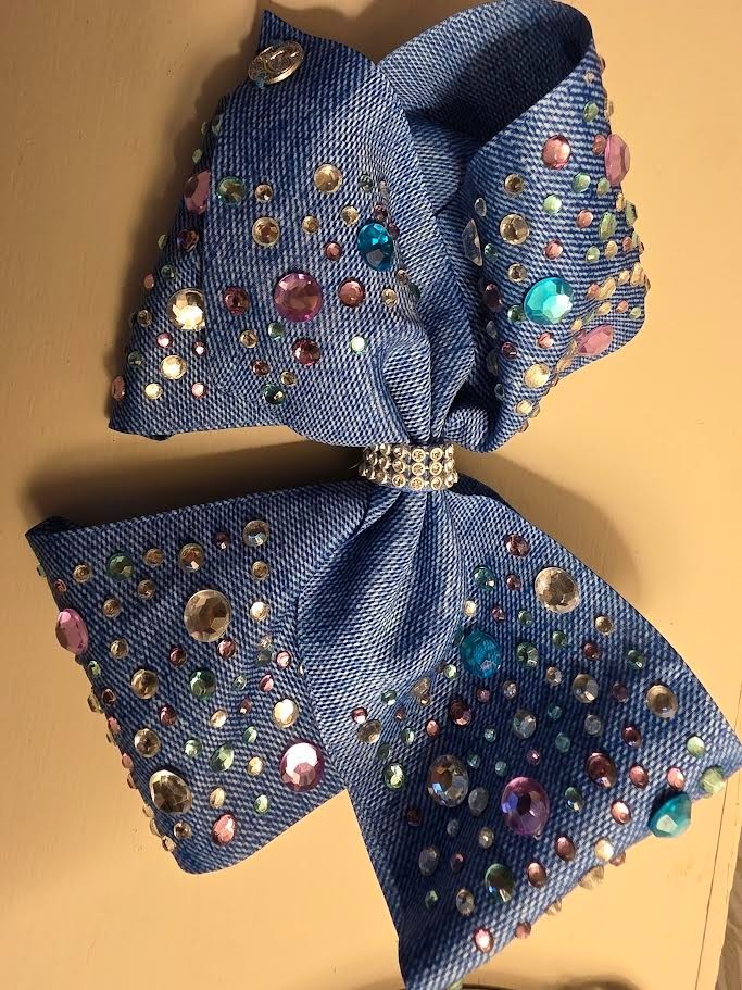 JoJo Siwa LARGE Blue Denium Look Rhinestone bow, Gently used.