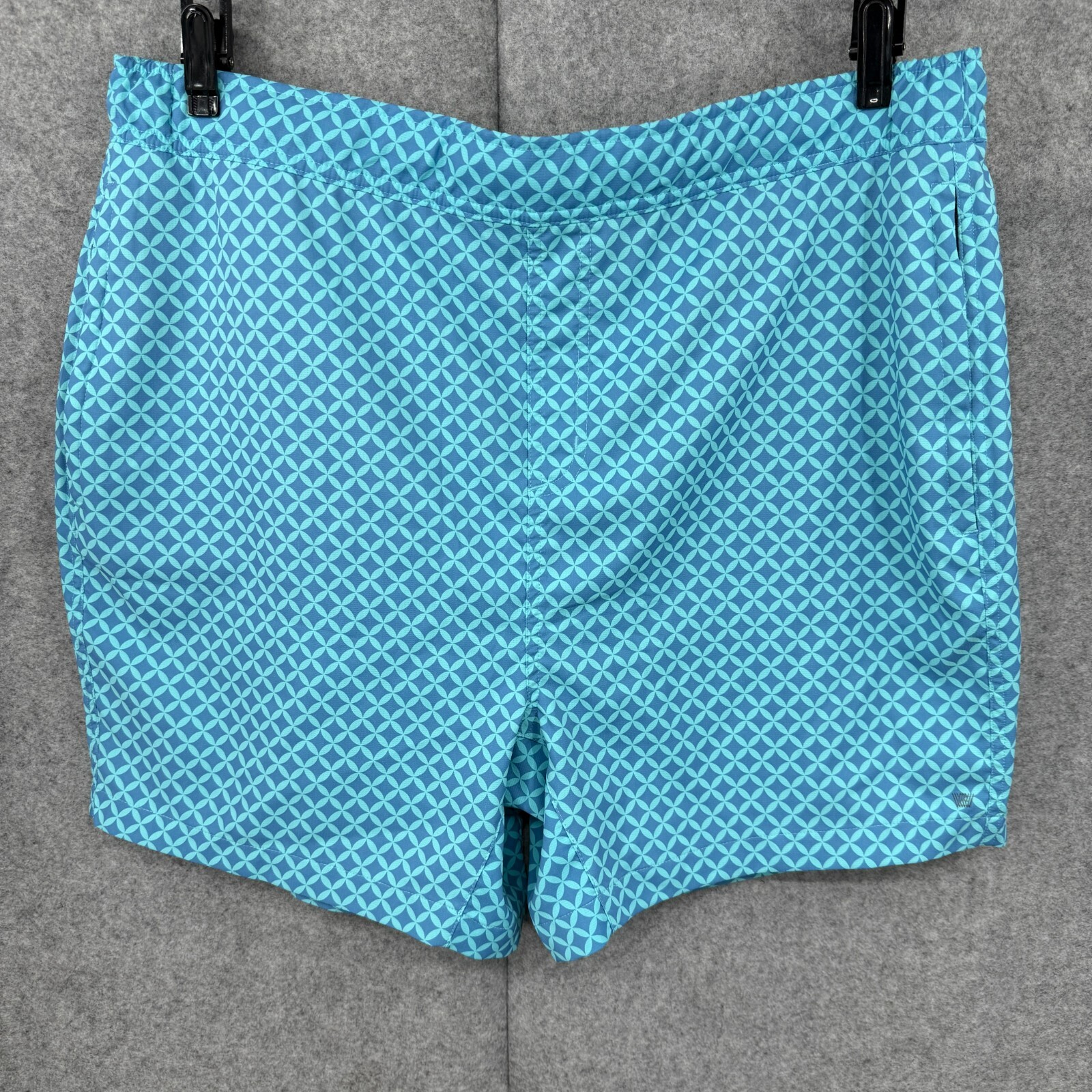 как выглядит Mack Weldon Swim Trunks Mens XXL Blue Geometric Board Shorts Zip Pocket фото