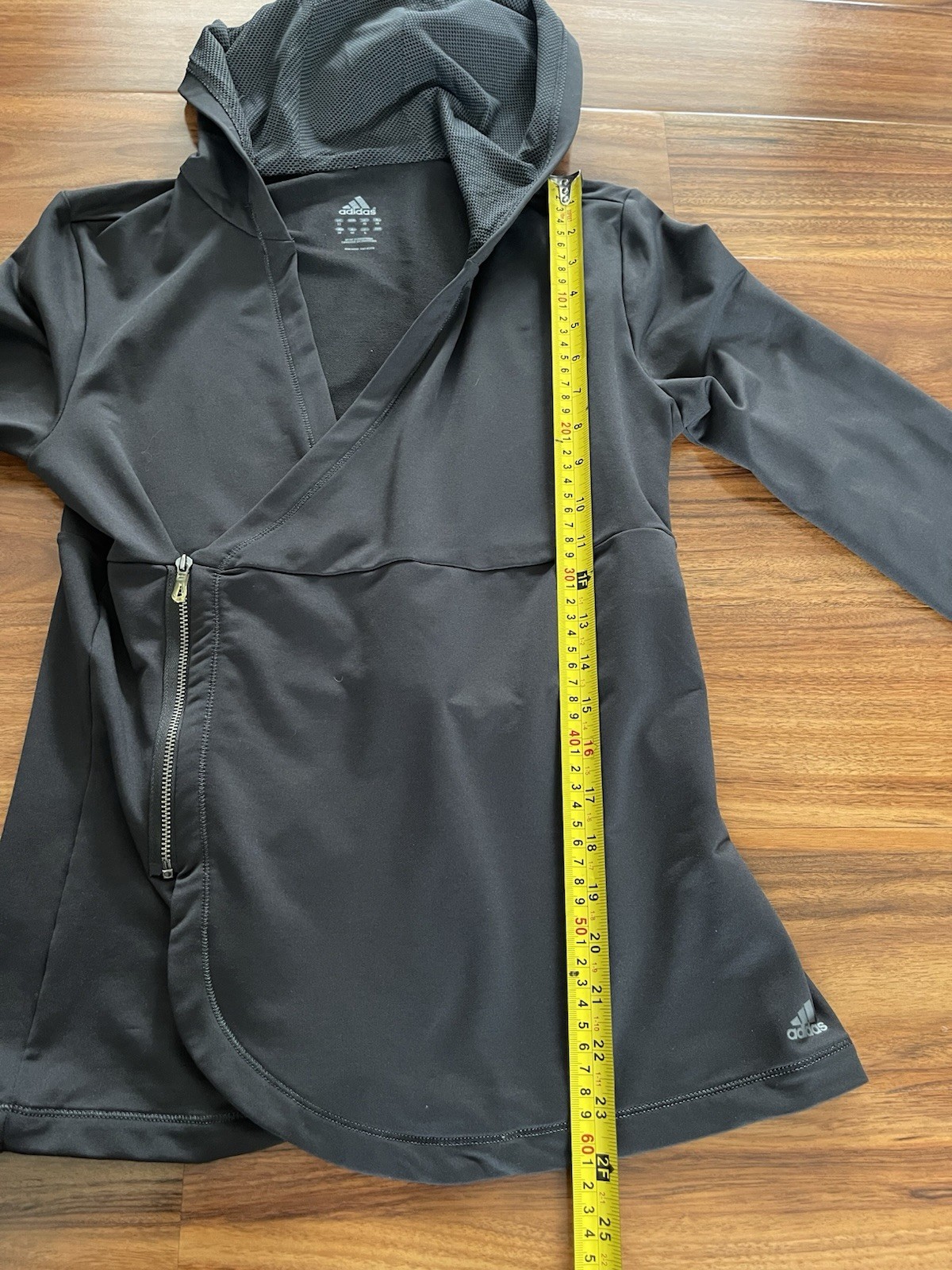 как выглядит Adidas Sweatshirt Womens Black Hooded Full Zip Clima365 Long Sleeve Solid size M фото