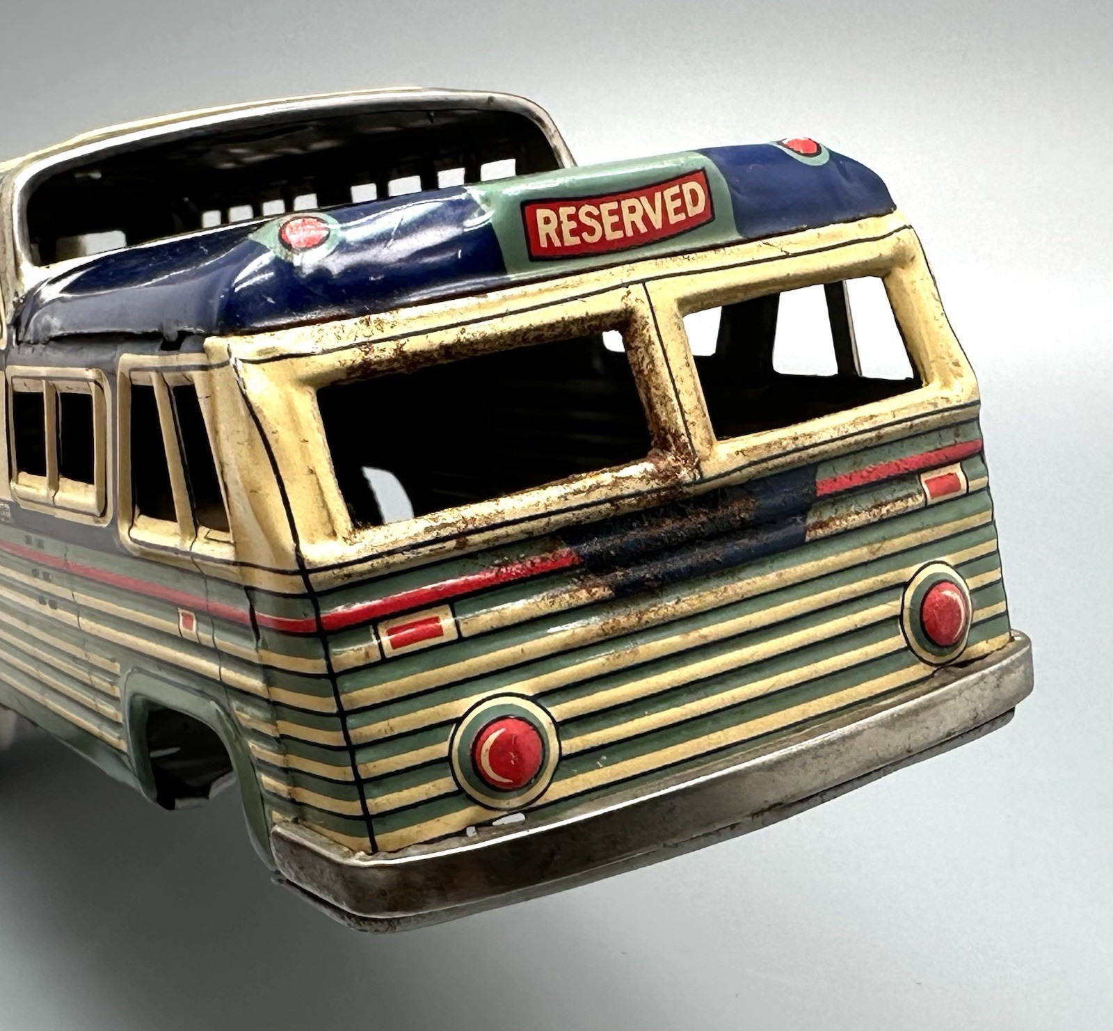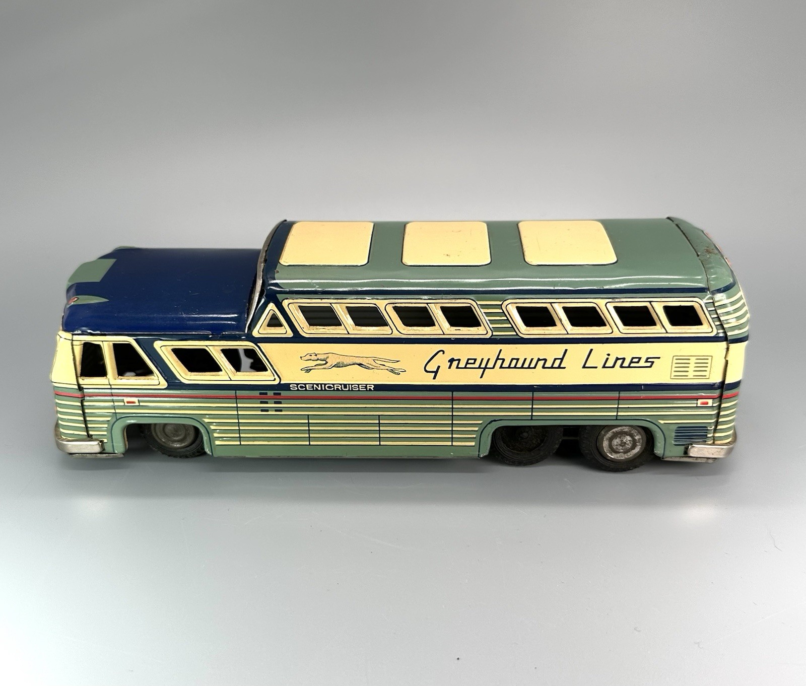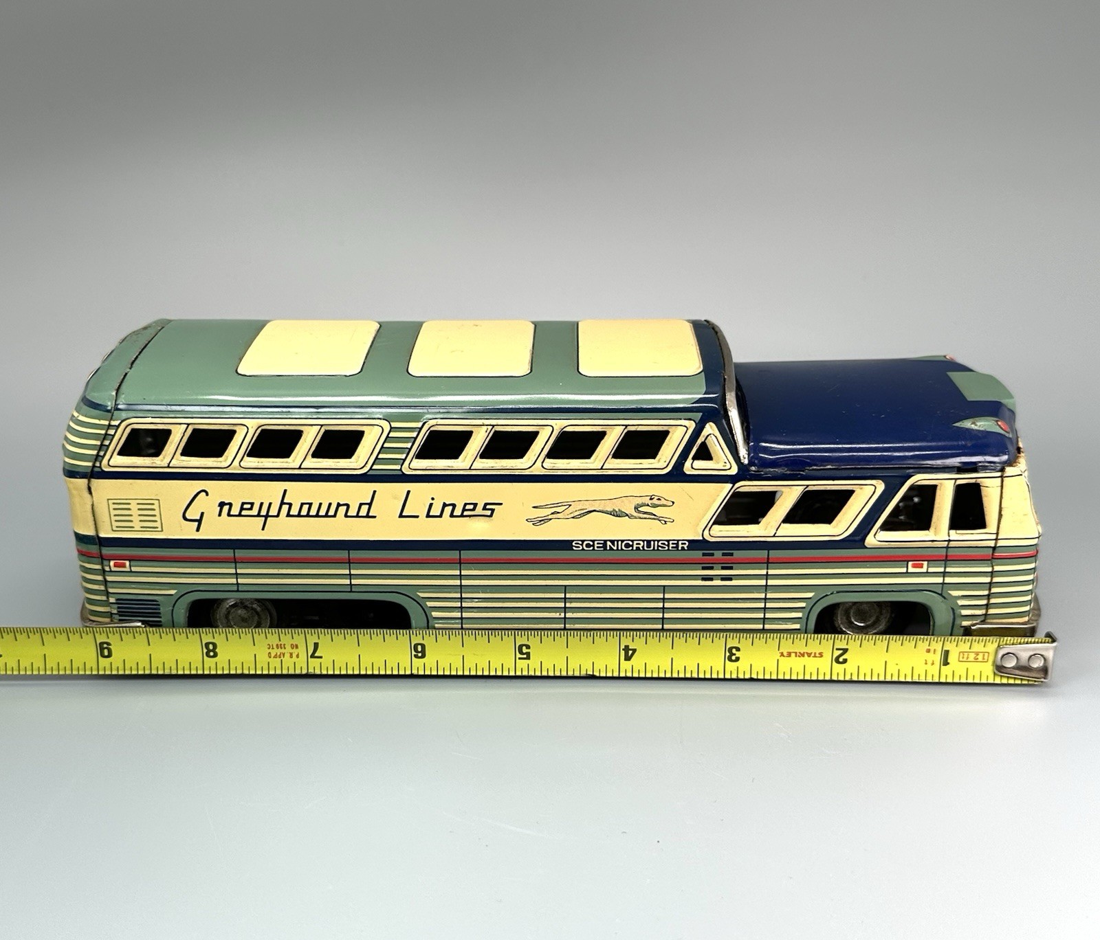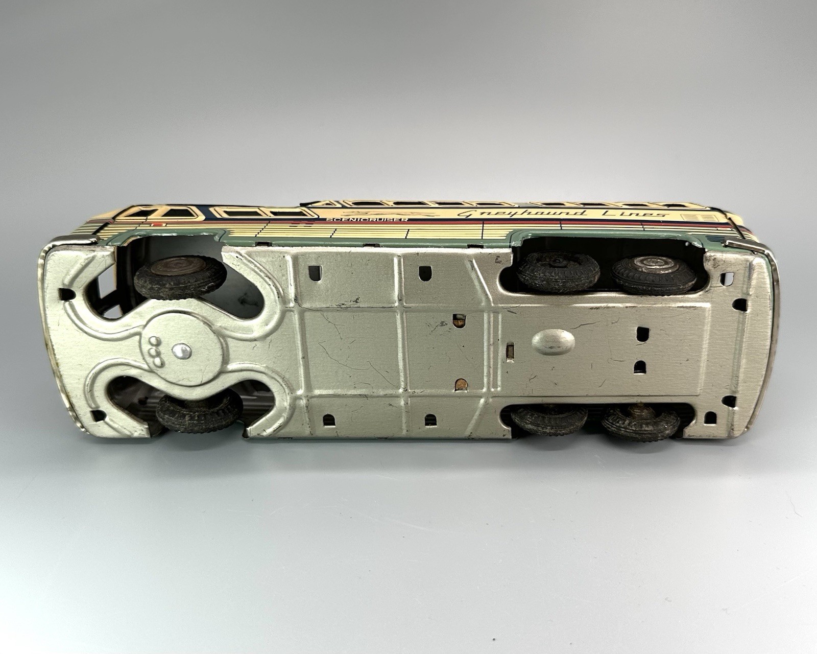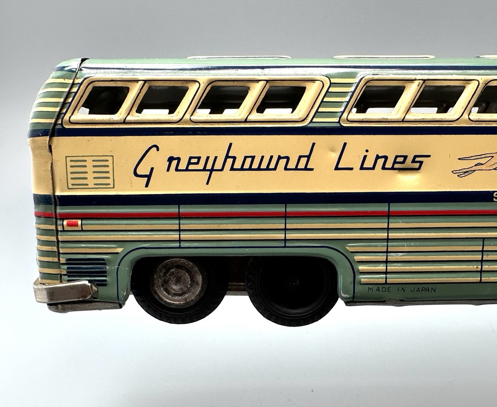 1950s Tin Friction Greyhound Lines Scenicruiser Bus / Original Vtg Japan Tin Toy