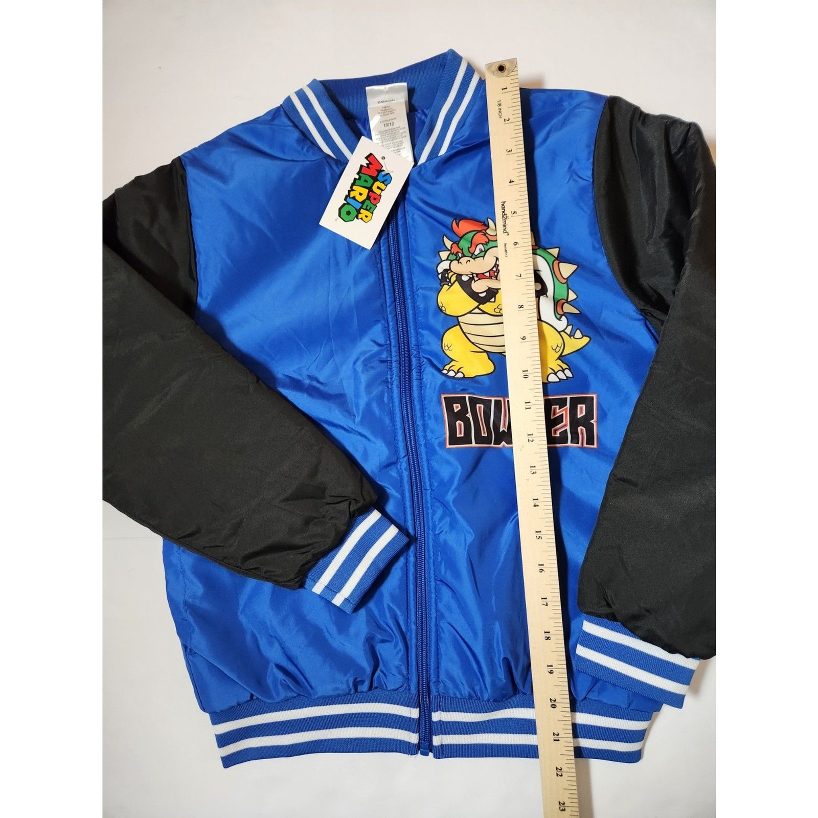 Super Mario Bowser Varsity Jacket Youth Medium 10/12 Blue/Black Zip Up NWT