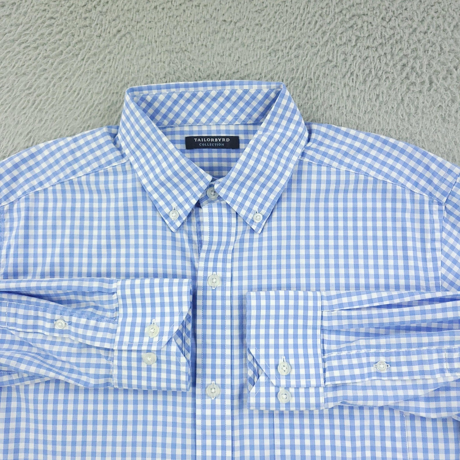 как выглядит Tailorbyrd Shirt Mens Large Blue Check Long Sleeve Button Down Stretch Casual фото