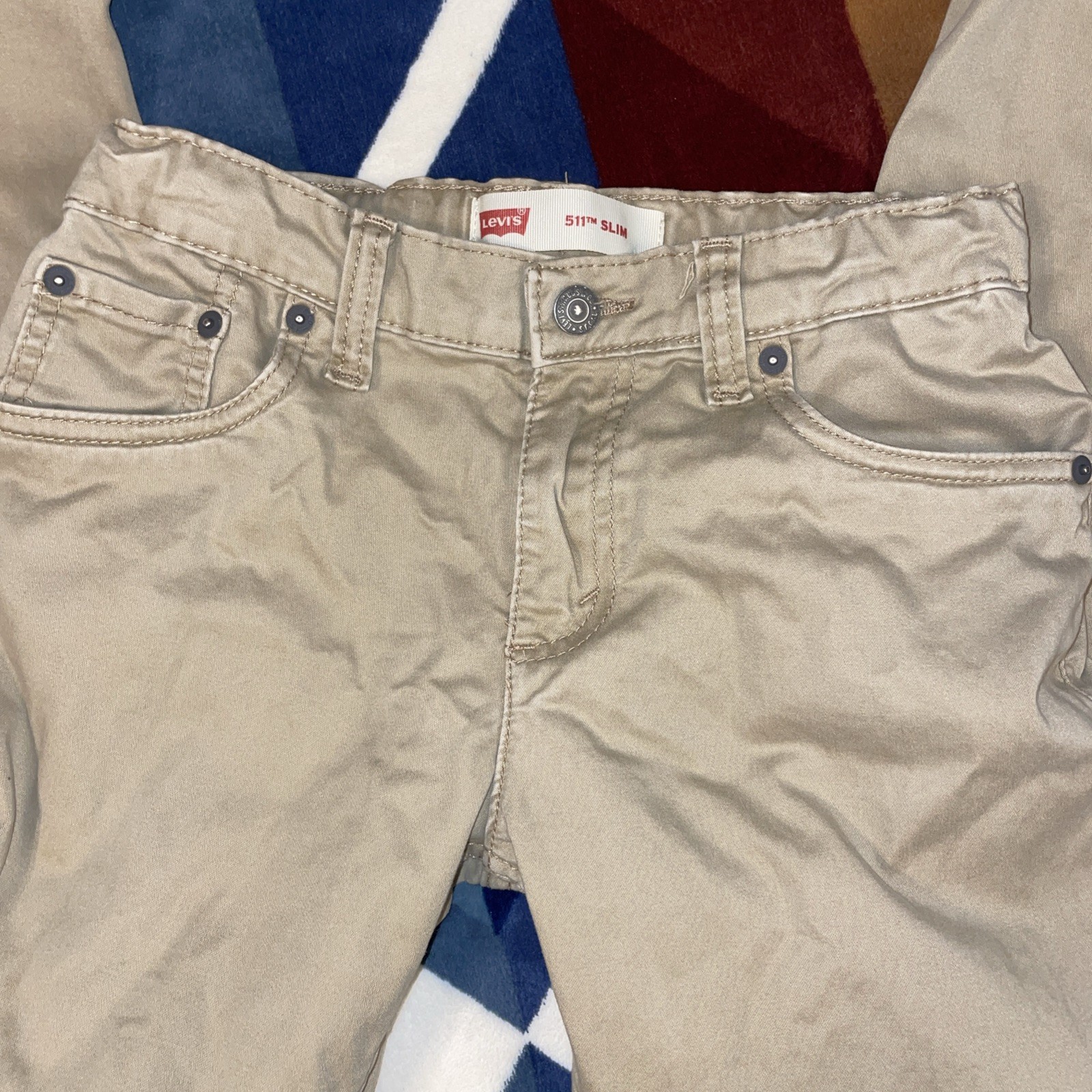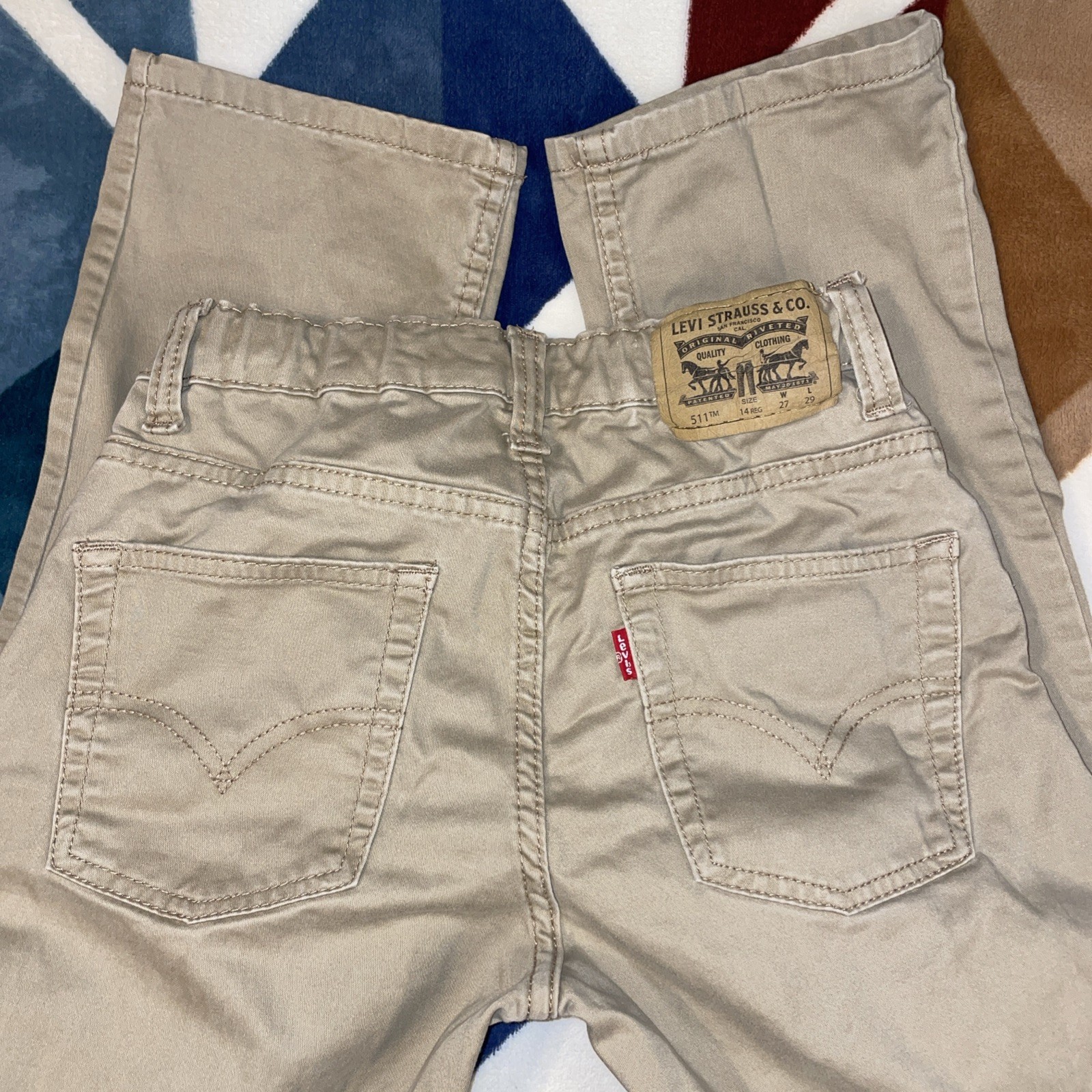 Levi's Boy s 511 Slim Fit Straight Leg Khaki Pants Beige Size 27x29 Adjustable