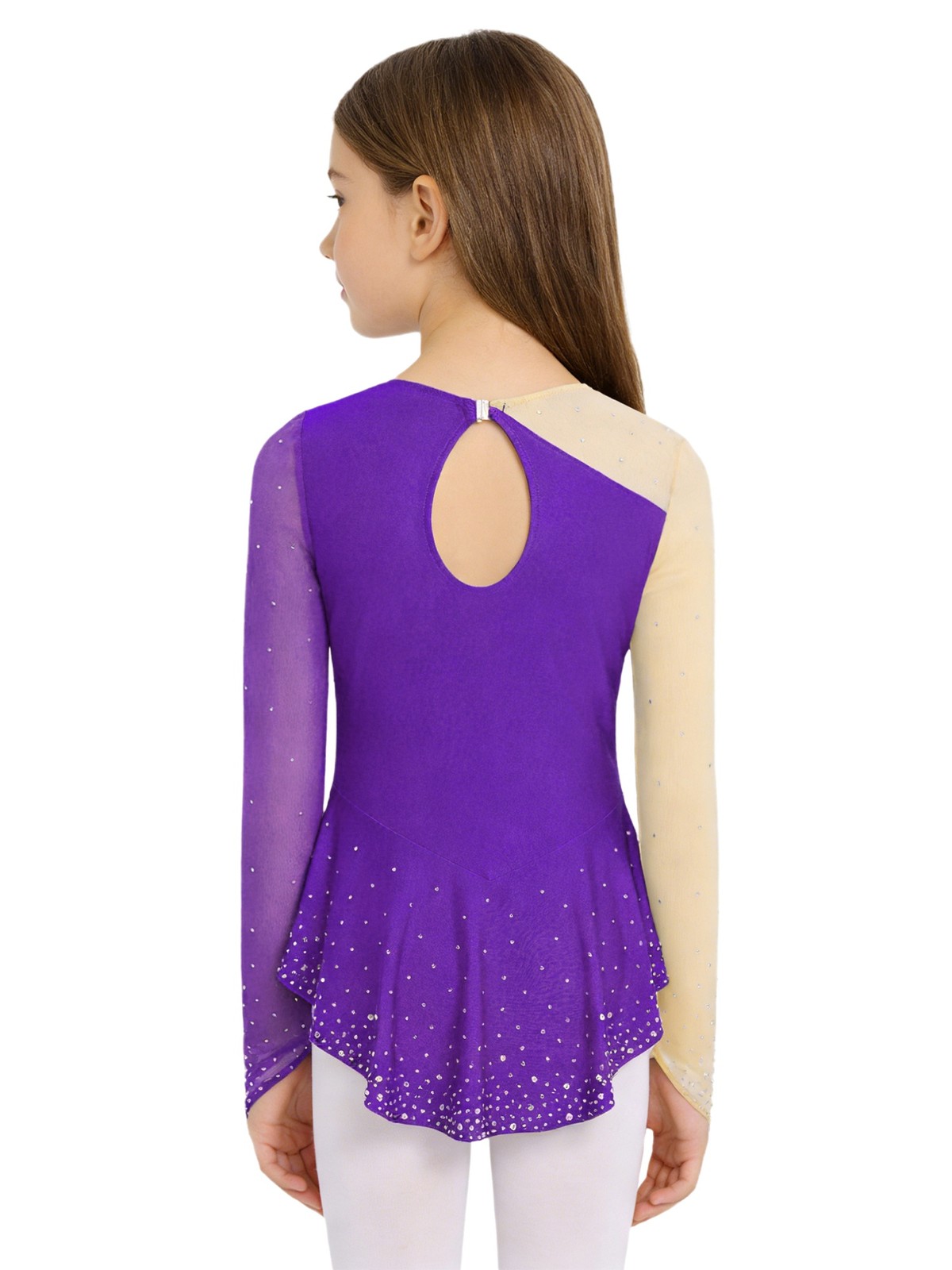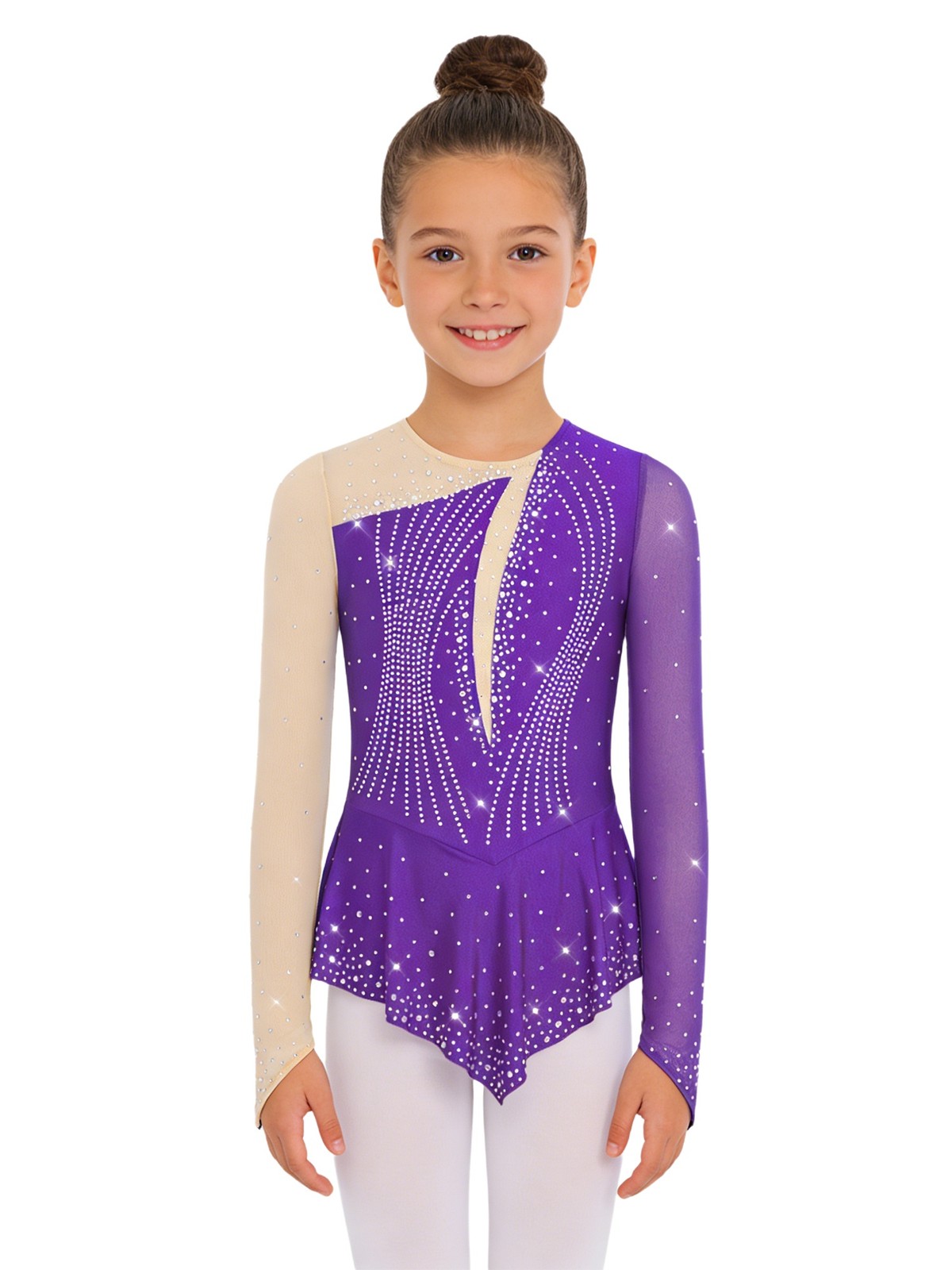 US Girls Shiny Lyrical Dancewear Sheer Mesh Figure Skating Dress Skirted Leotard