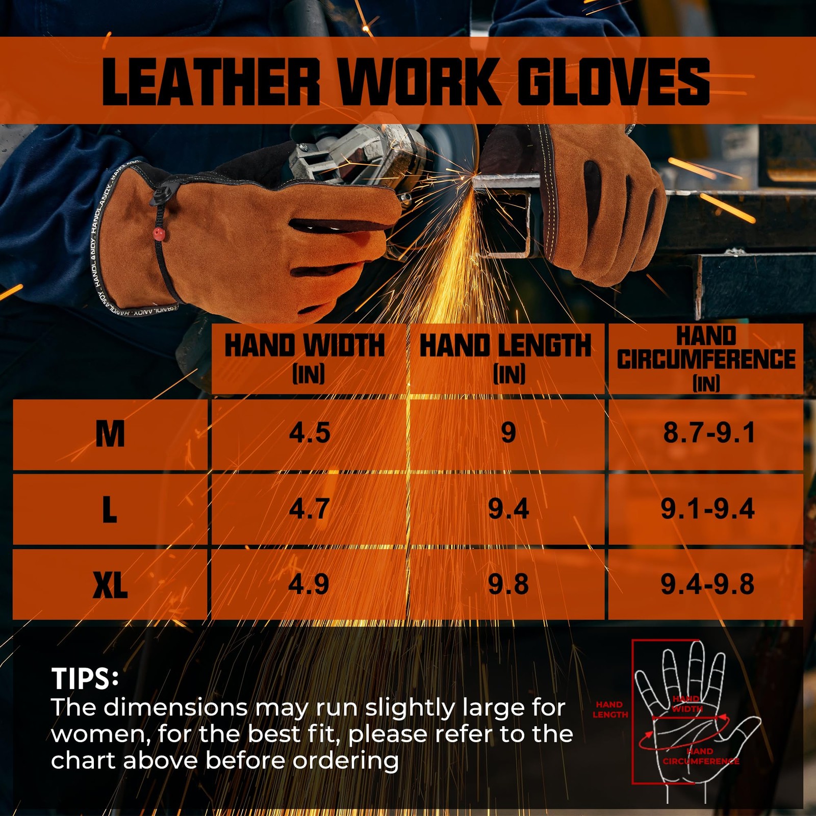 HANDLANDY Leather Work Gloves for Men and Women, Utility Tough Cowhide Glove