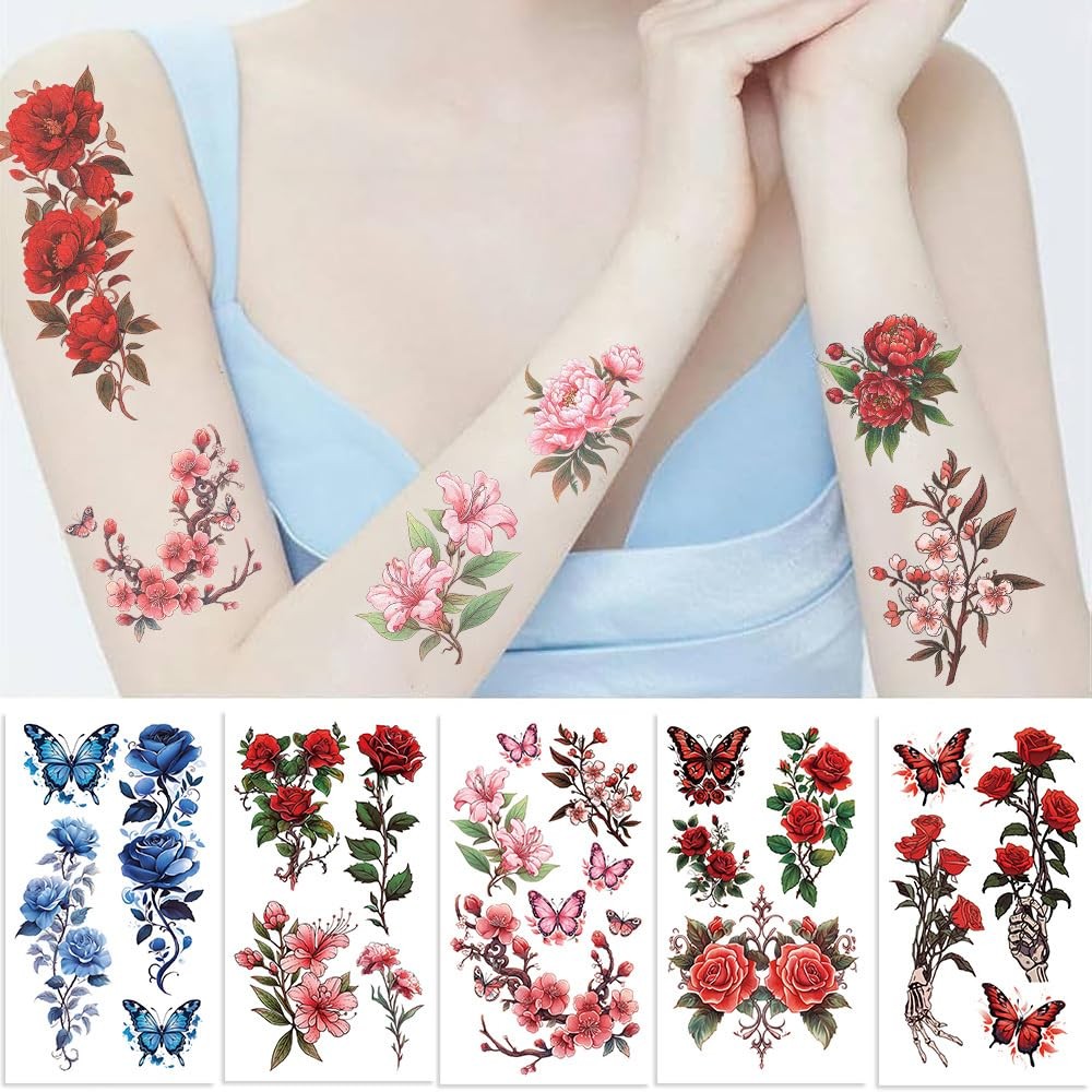 96PCS Flowers Temporary Tattoos Stickers, Roses, Butterflies and MultiColored...