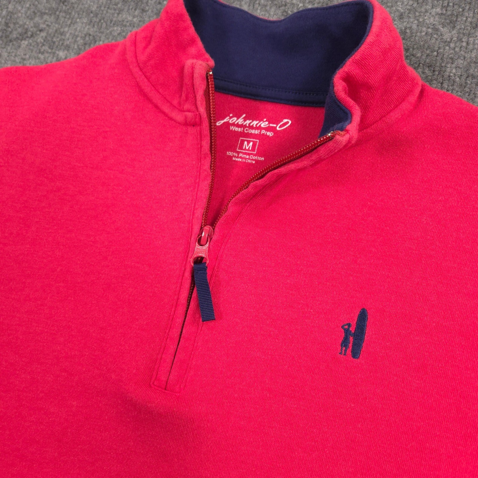 Johnnie O 1/4 Zip Sweatshirt Mens Medium Red Heather Pima Cotton Pullover Preppy