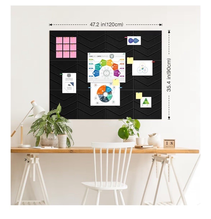 Large Cork Board 48x36, 12 Pack Felt Bulletin Board for Walls Black Cork