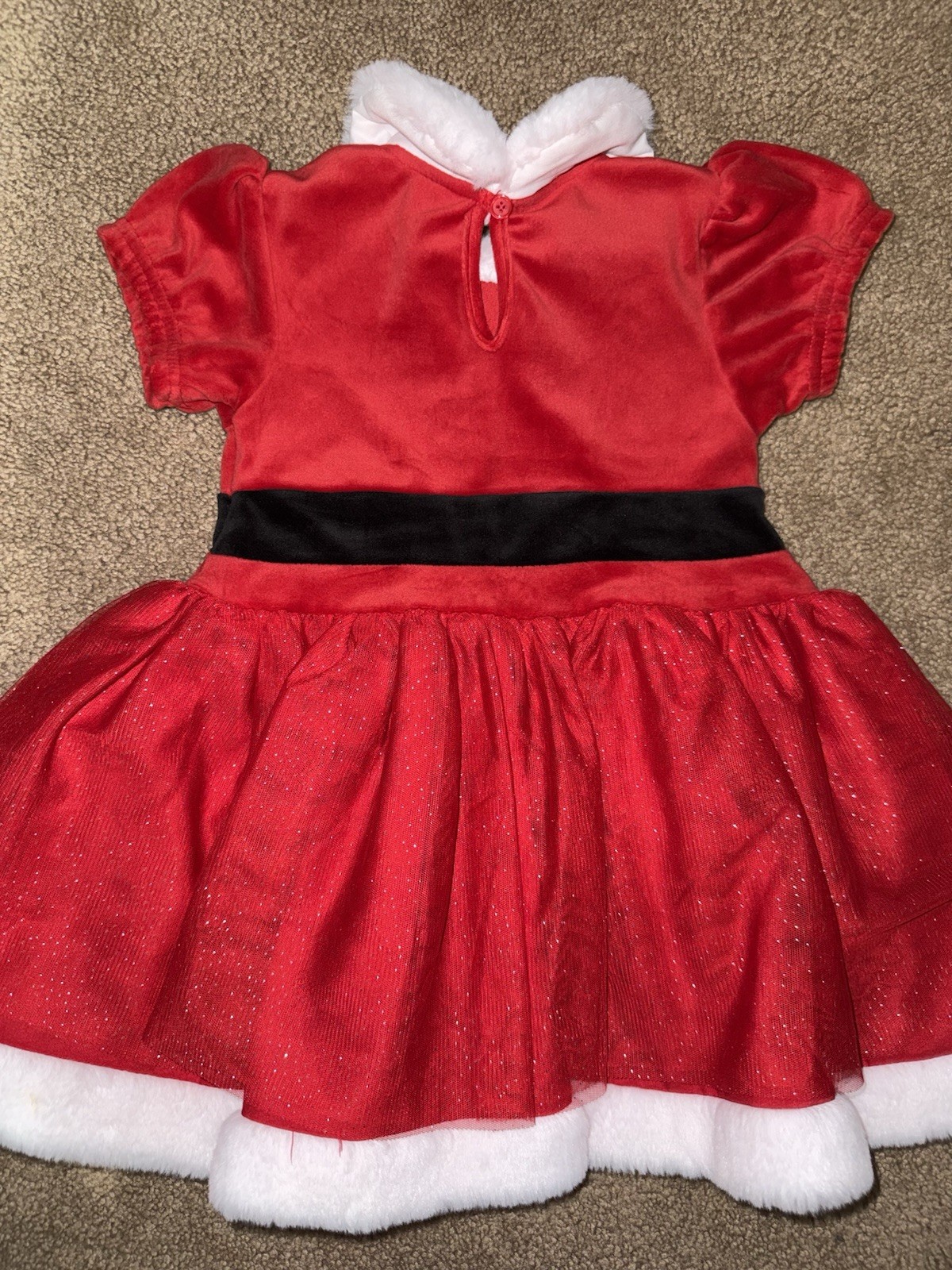 как выглядит Girls Red White Santa Claus Dress 2T Fit Flare Velour Faux Fur Collar Belt фото