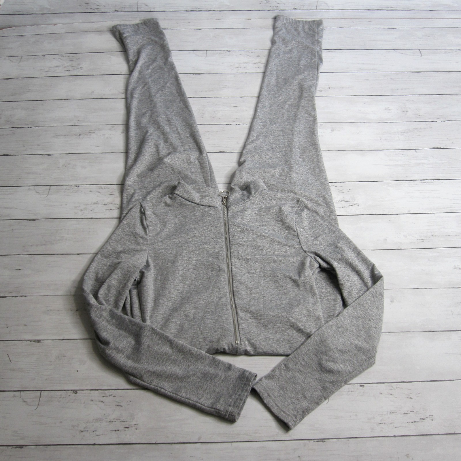как выглядит Womens One Piece Bodycon Catsuit Jumpsuit Size M Gray Fleece Long Sleeve фото