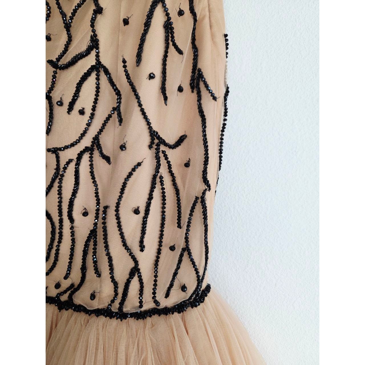 как выглядит Tarik Ediz Gown 2 Nude Black Florida 92390 Beaded Mermaid Sheer Illusion Prom фото