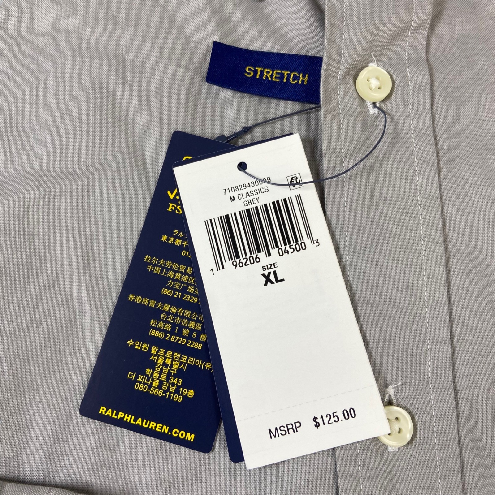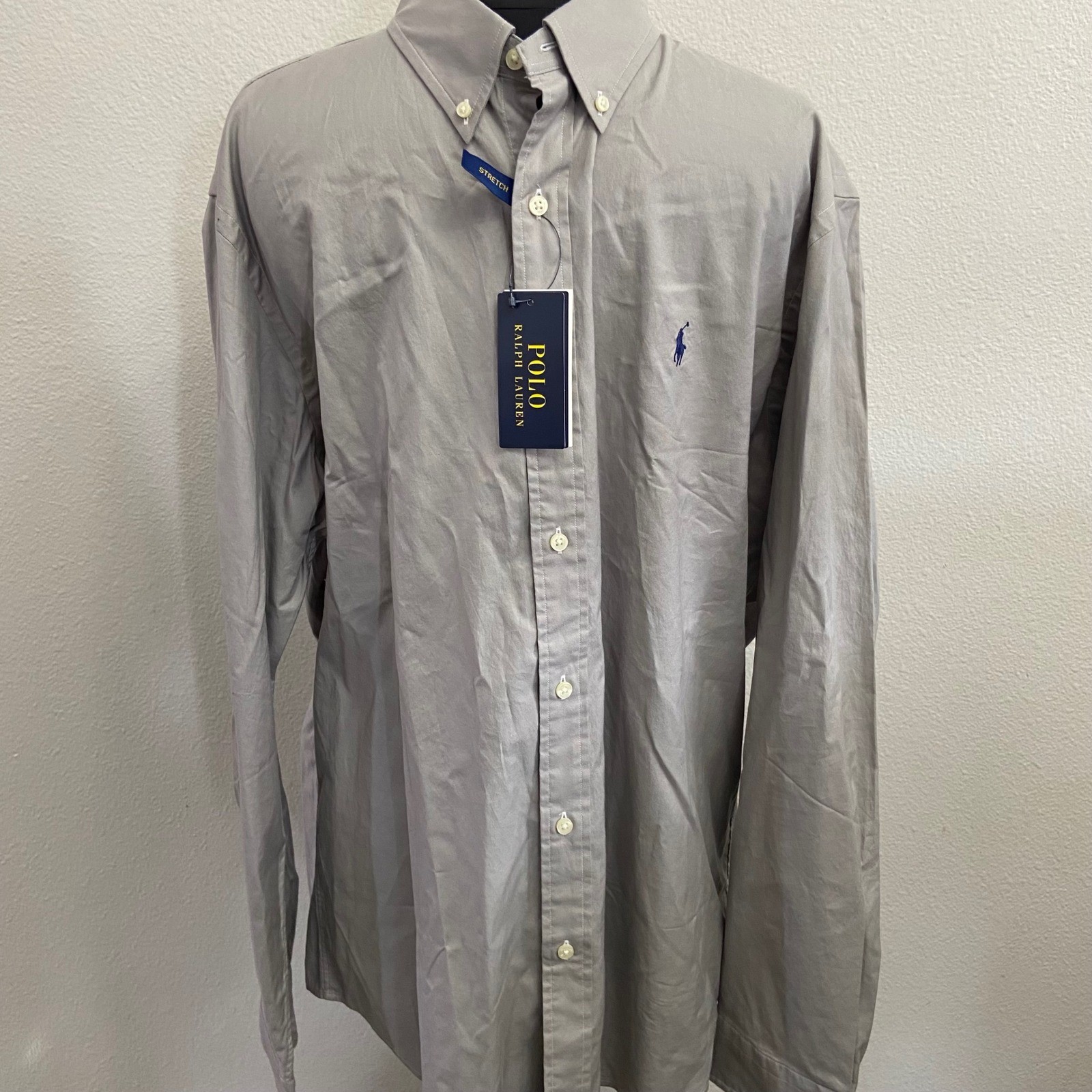 Polo Ralph Lauren Mens XL Custom Fit Stretch Oxford Shirt Gray Button Down NEW