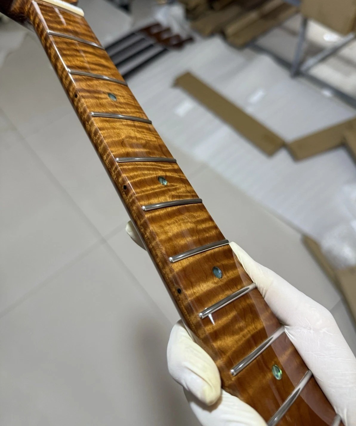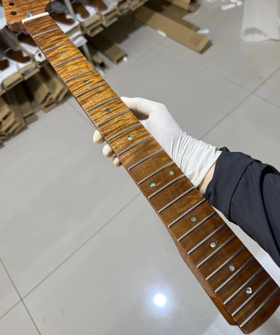 25.5inch Gloss AAA 22 frets Roasted flame maple electric guitar neck Parts
