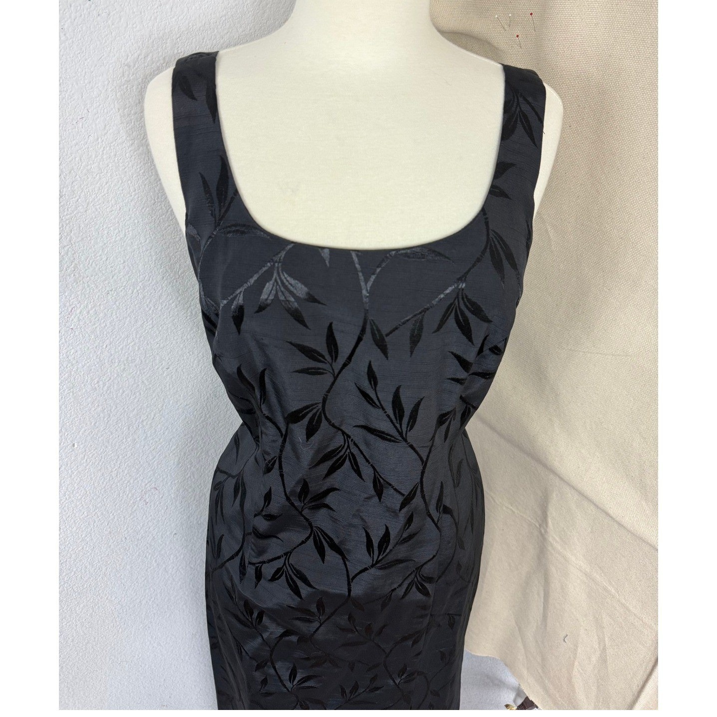 JR Nites by Caliendo Vintage Black Leaf Jacquard 2 Piece Dress and Jacket Set 10