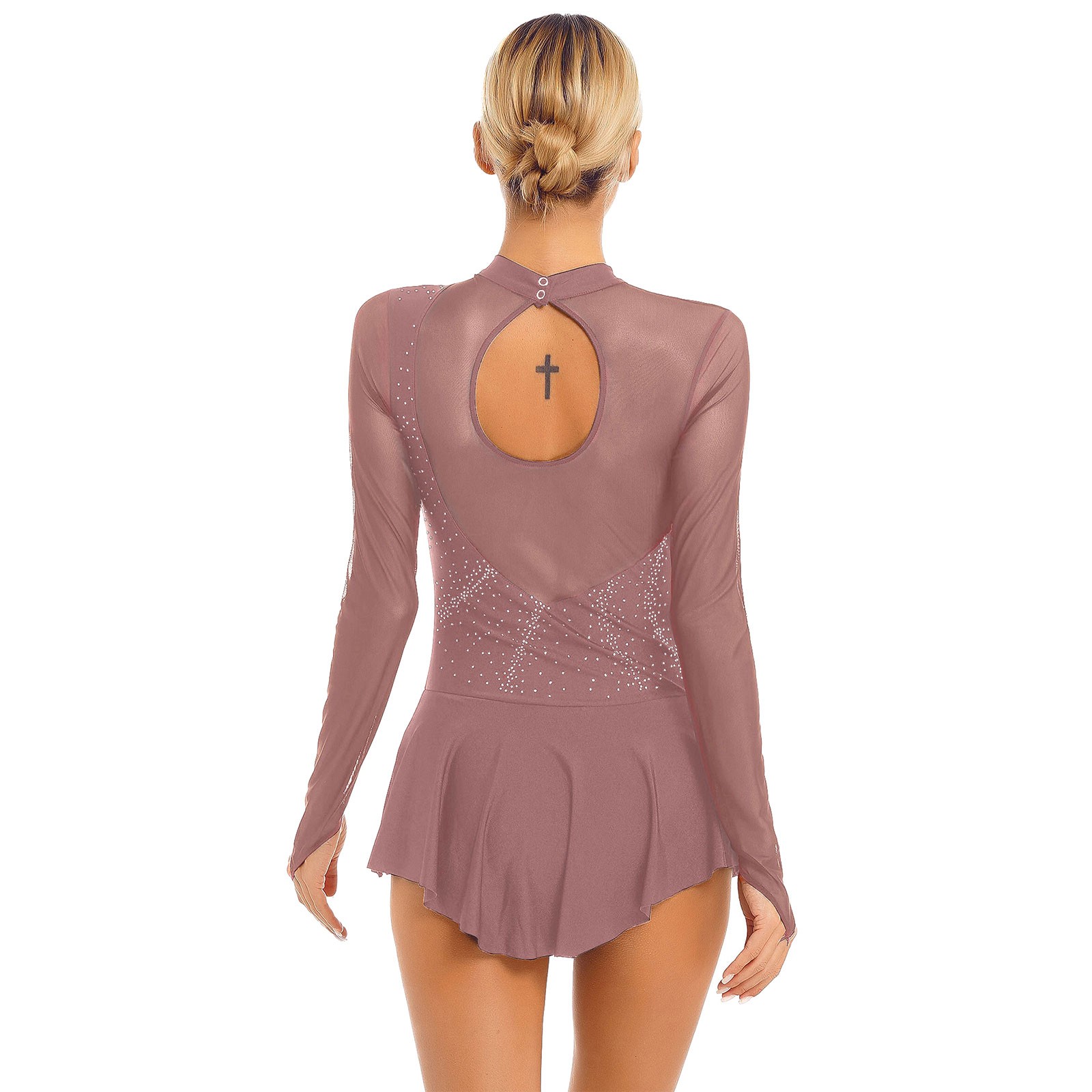 Womens Figure Skating Dress Dance Leotard Dress Mesh Lyrical Dancewear Costume