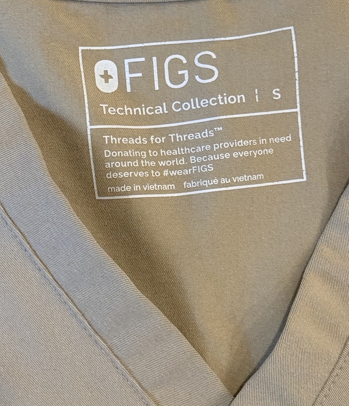 FIGS Catarina Scrub Top Womens Small V-Neck Technical Collection Tan Khaki