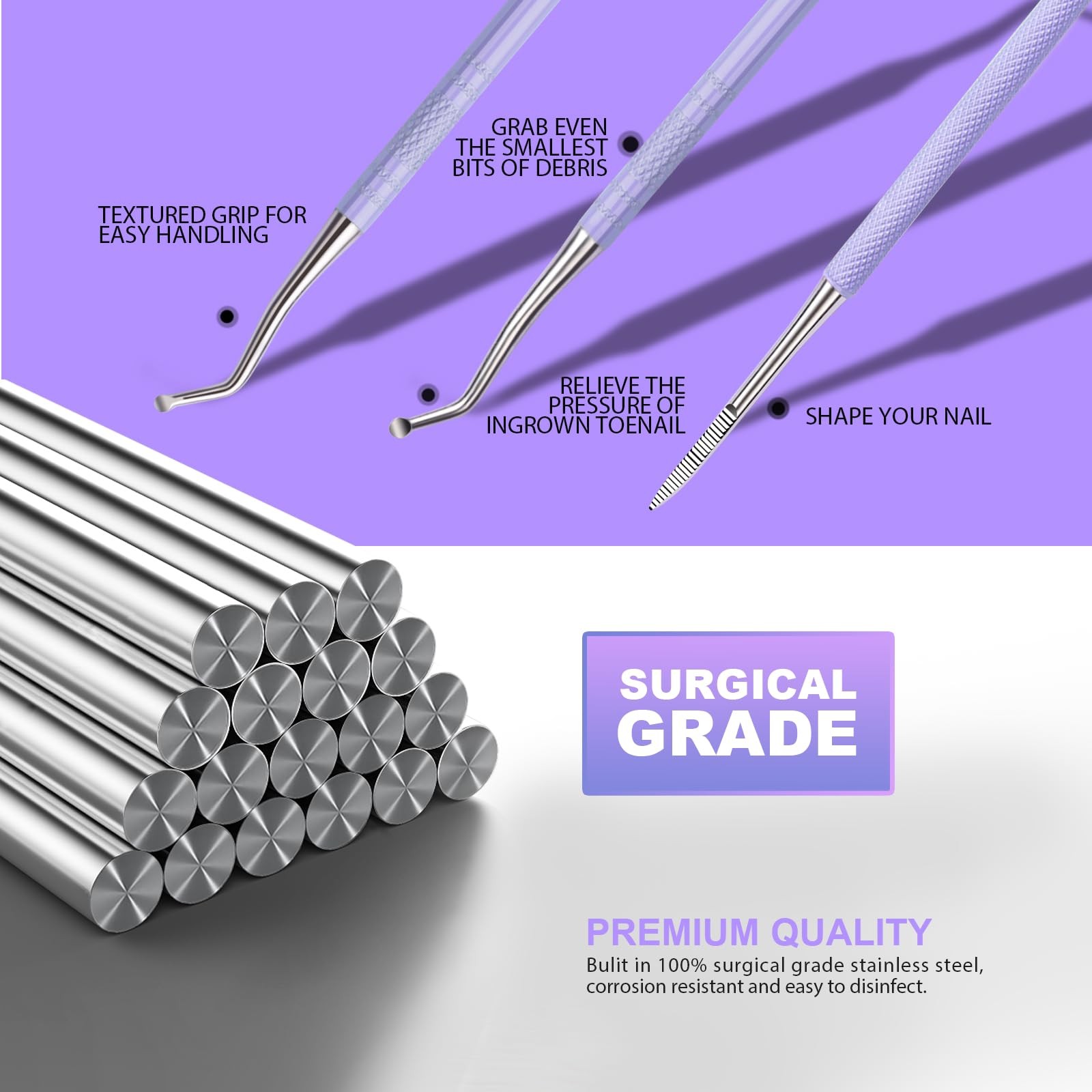 Ingrown Toenail File Lifter Removal Kit Professional Pedicure Tools Purple